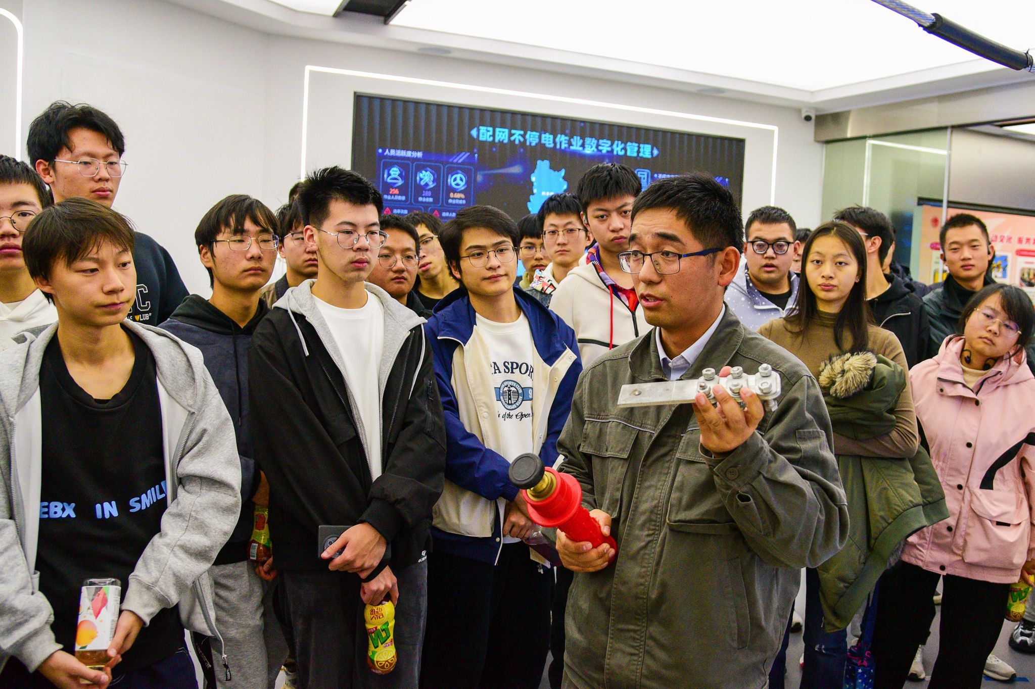 仪式后,学院师生实地参观了不停电作业中心及安徽省电力有限公司工厂化检修基地,深入了解了合肥电力安装有限公司在电力规划设计领域的前沿技术与创新成果。