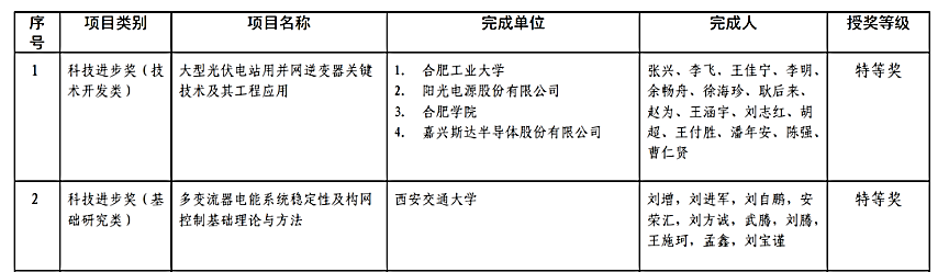 该获奖项目由合肥工业大学联合阳光电源股份有限公司、合肥学院、嘉兴斯达半导体股份有限公司等单位紧密合作,历经十余年的科技攻关,突破了大型光伏电站用逆变器在并网稳定性与主动支撑、综合效率提升、高效国产化IGBT技术等方面的众多技术瓶颈。项目多项创新成果在阳光电源股份有限公司实现产业化,使其光伏逆变器全球市场占有率长期位居世界首位,相关技术国际领先,并取得了巨大的社会经济效益,引领了大型电站光伏逆变器技术及产业的发展,推动了高渗透率下大型光伏电站用并网逆变器的技术创新。
