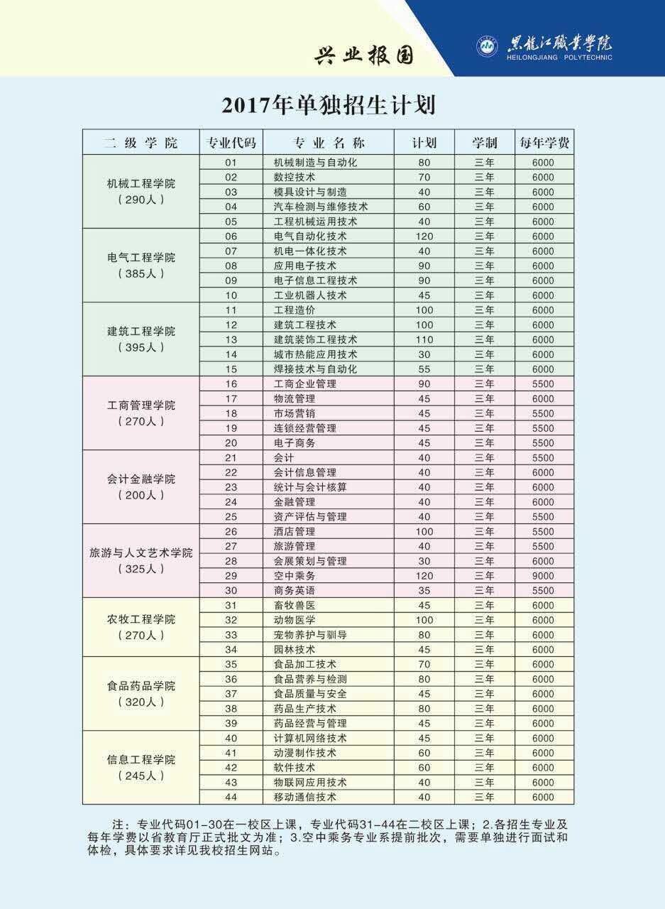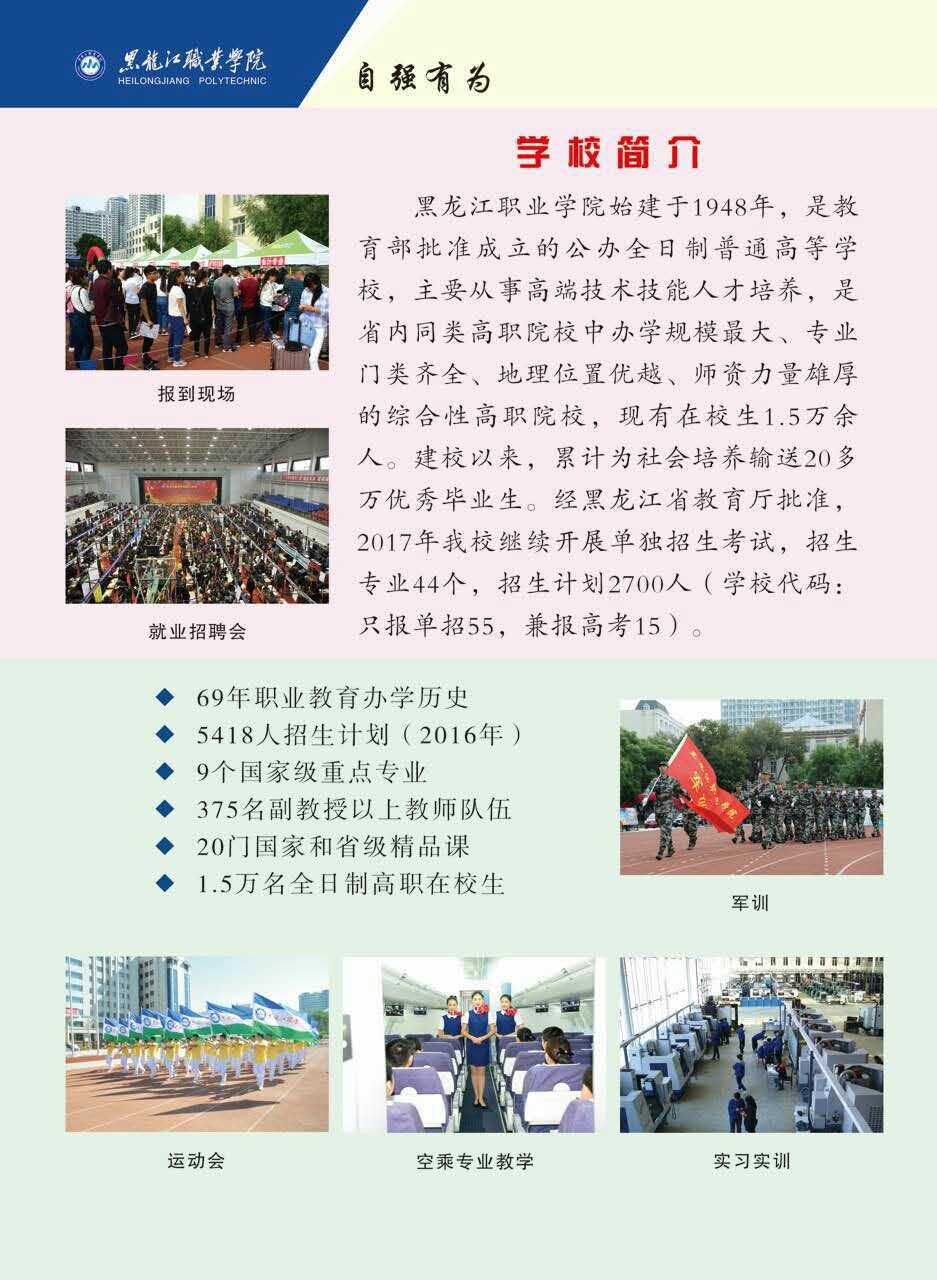 黑龙江职业学院2016年单独招生简章