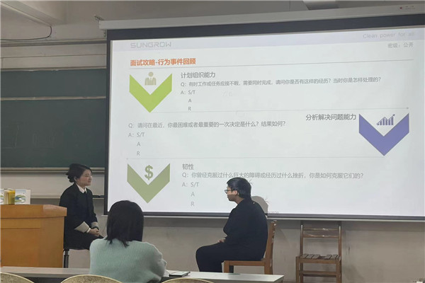 本次讲座邀请了电气与自动化工程学院校企合作单位——阳光电源股份有限公司和双杰电气股份有限公司人力资源经理李晓燕女士和邵珠恒先生为同学们做简历制作技巧分享和求职面试经验分享。“如何作答一份清晰的职业规划”“如何撰写一份优秀简历”“如何在面试中脱颖而出”,两位老师由同学们非常关心的三个问题出发,由浅及深地展开了方法与技巧讲解。