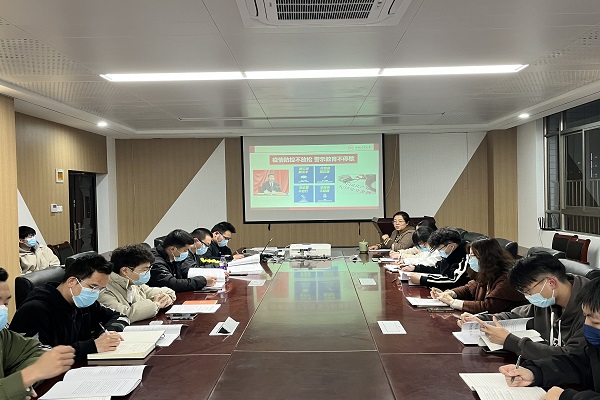 随后,党支部书记领学了《30 种疫情防控违法违规行为及法律后果》,通过典型警示案例分析,引导学生党员了解疫情防控中可能出现的违法违规行为及可能产生的法律后果,教育引导广大学生党员牢固树立纪律和规矩意识,充分发挥模范带头作用,在当前打赢疫情防控阻击战中展现青年党员的使命担当。党员同学们深受警醒,积极交流发言,纷纷表示,要严格要求自己,积极配合防疫工作,思想不麻痹、行动不随意,守住底线和阵地,发挥模范带头作用,凝心聚力,众志成城,同心战“疫”,静待春暖花开之时。