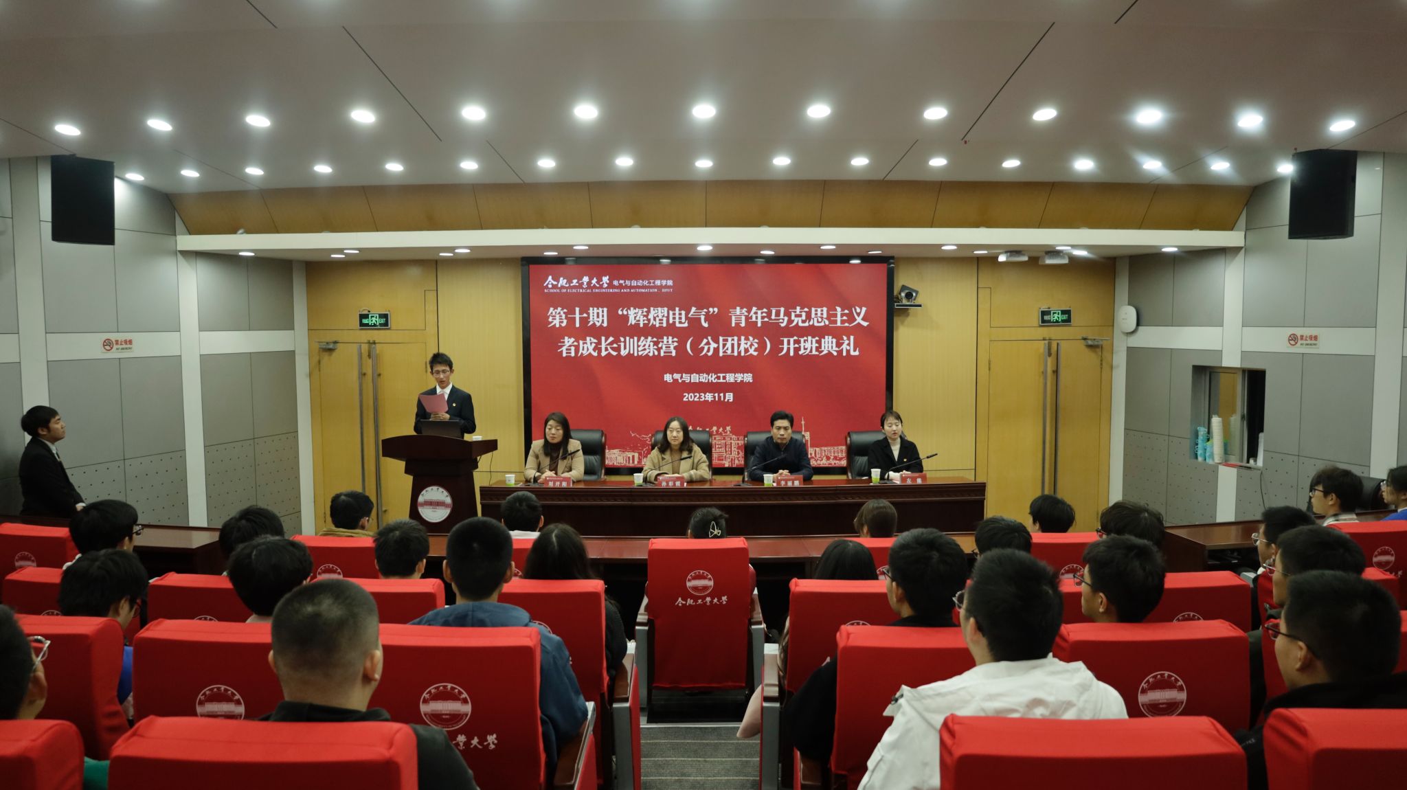 11月17日晚,电气与自动化工程学院第十期“辉熠电气”青年马克思主义者成长训练营(分团校)开班仪式暨团课第一讲在屯溪路校区学术会议中心二楼小报告厅举行,校团委、学院相关负责老师,团校班主任和团校学员参加活动。