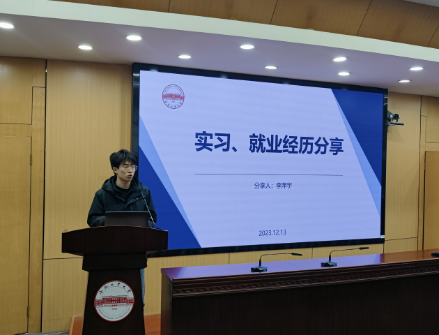 本期活动邀请了李萍宇、田鹏坤两位优秀研究生代表做分享,李萍宇从自己的实习经历和收获为切入点,向同学们介绍了如何精准寻找实习渠道,如何在毕业季校园招聘中脱颖而出,并以此为基建议大家要在研究生初始阶段做好人生规划,锚定目标,加速发力。互动环节,李萍宇向与会同学分享了提高科研和学习效率的方法。