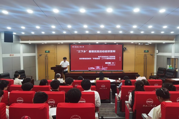 9月20日,电气与自动化工程学院2023年暑期“三下乡”社会实践成果汇报答辩在学术会议中心二楼报告厅举行,学院团委相关老师担任评委,100余名2023级新生参加活动。