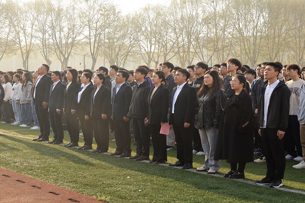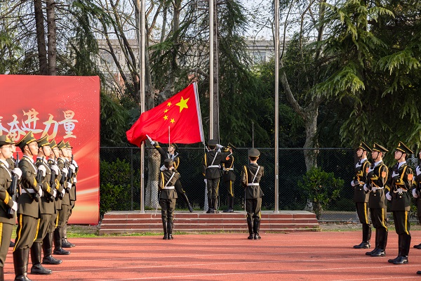 4月1日清晨,电气与自动化工程学院在屯溪路校区西操场举行“深入学习两会精神,凝聚青春奋进力量”主题升旗仪式暨国旗下的思政课,校党委学生工作部、学院相关负责人、辅导员以及全体本科生和研究生参加了活动。活动由学院团委副书记、学生工作办公室副主任左能主持。