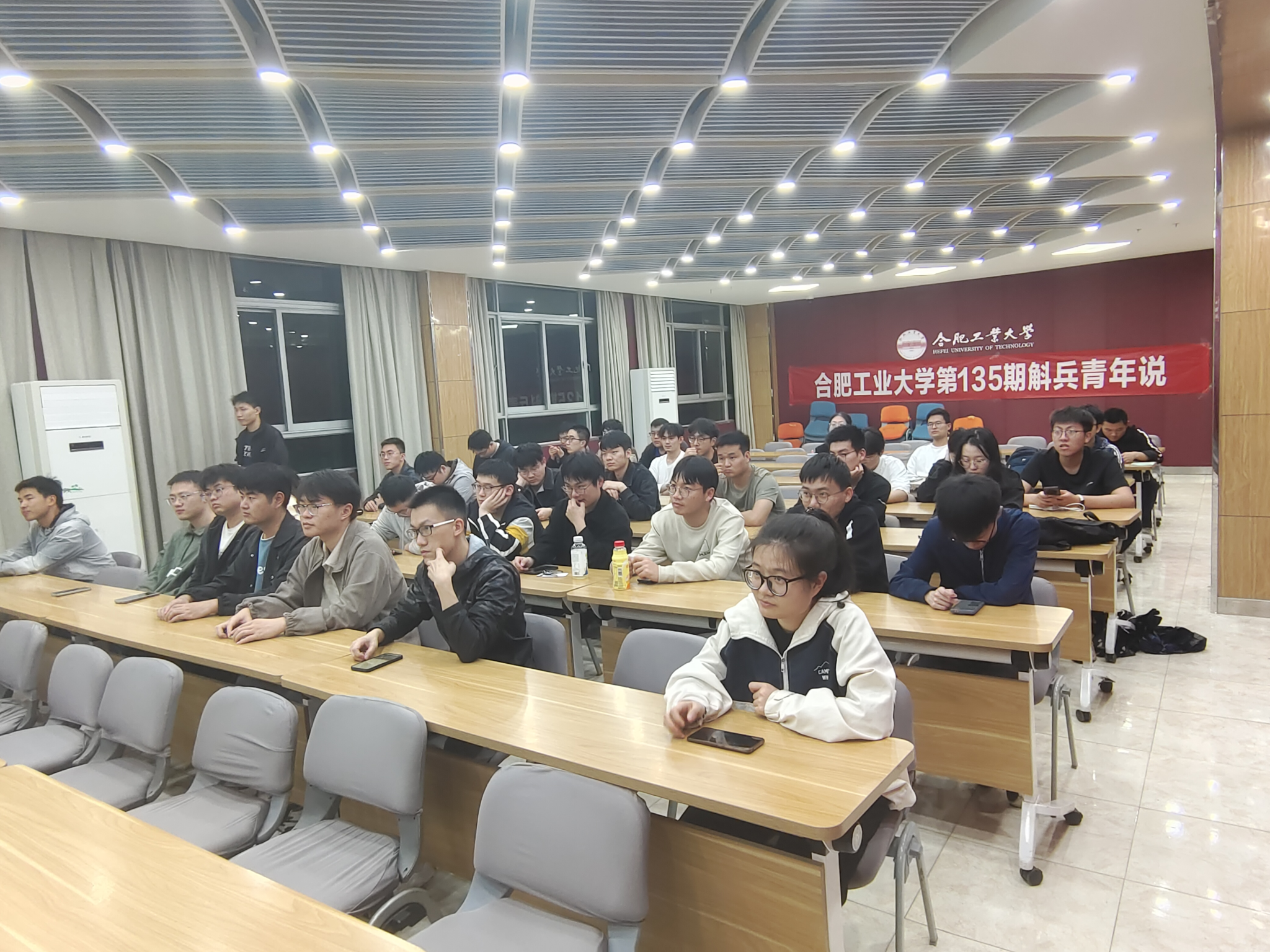 4月19日,合肥工业大学第135期斛兵青年说在在屯溪路校区第一宣讲厅举办,本期斛兵青年说的主题为“索路问向,‘熠’起前行”,活动邀请了电气与自动化工程学院2021级硕士研究生叶寿洪和童倩倩两位同学作成长经验分享,学院60余名研究生积极参与了此次活动。