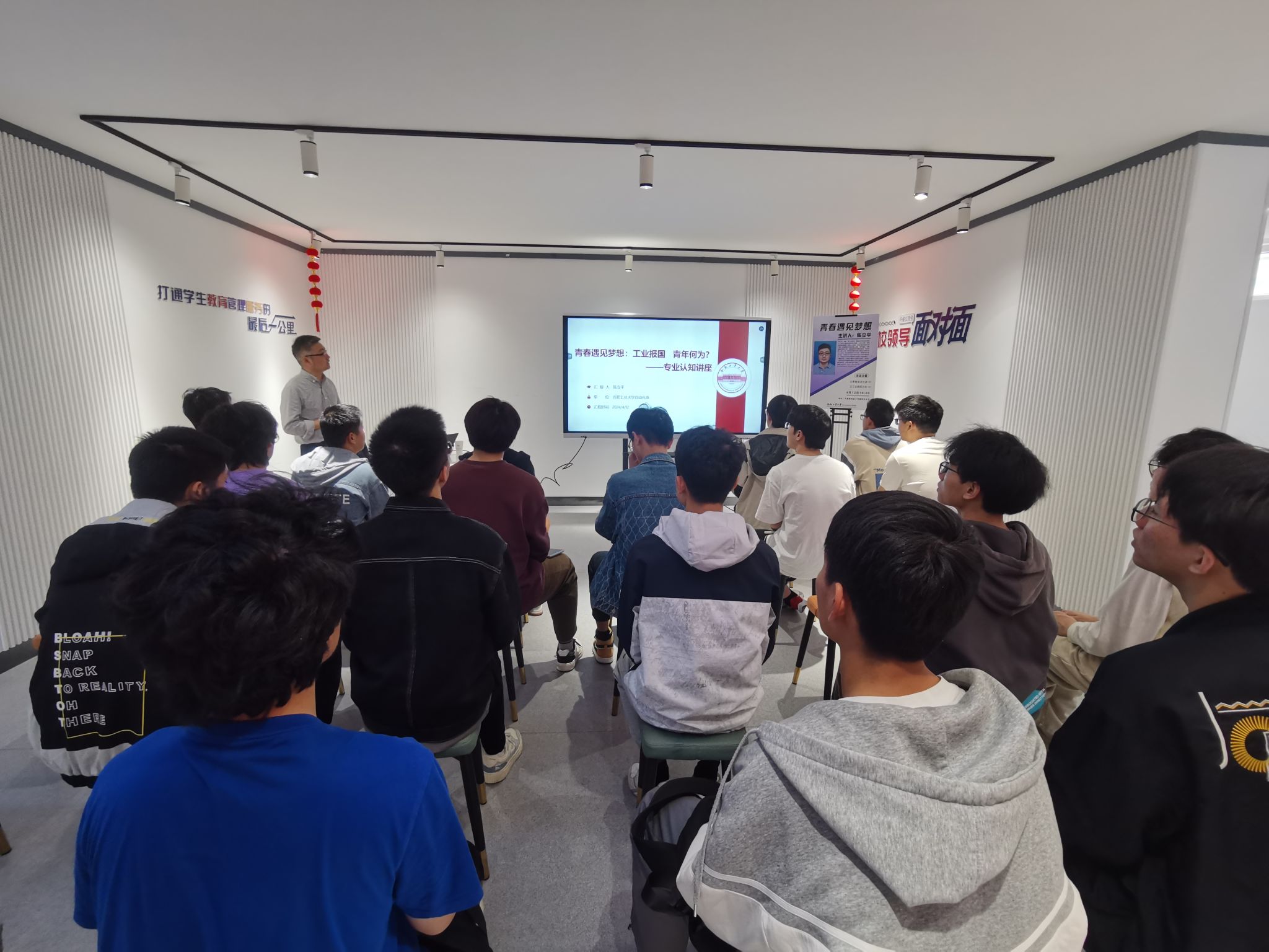 为帮助学生明晰专业发展方向,树立正确的学习观、成才观,激励学生以青春奋进之姿,立工业报国之志。4月12日,电气与自动化工程学院在屯溪路校区七号楼学生社区沙龙空间开展“青春遇见梦想”专业发展交流会,邀请学院自动化系陈立平教授为同学们做专题分享,学院30余名高年级学生参加活动。