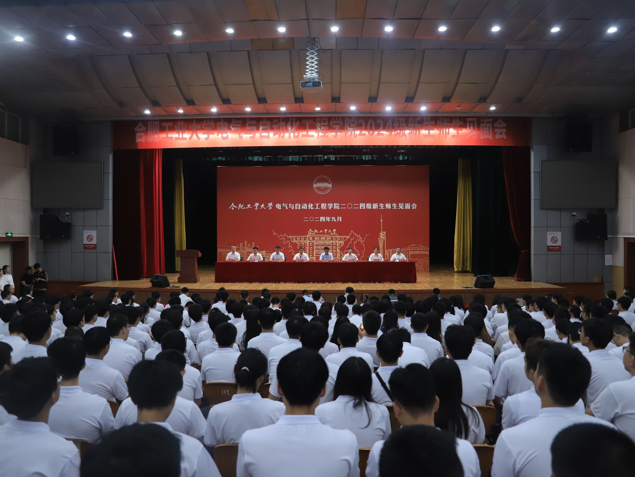 9月5日晚上,电气与自动化工程学院2024级新生师生见面会在斛兵礼堂举行。学院主要负责同志以及2024级各班级班主任出席大会。学院980名本科生、研究生新生齐聚斛兵礼堂,启航“熠闪”的青春。