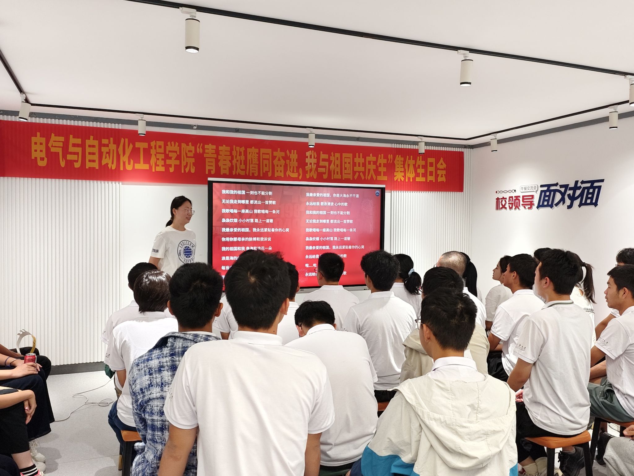 为庆祝新中国成立75周年,进一步激发广大学生热爱伟大祖国、勇担时代重任的热情,10月1日,电气与自动化工程学院于屯溪路校区七号学生公寓学生生活成长社区举行“青春挺膺同奋进,我与祖国共庆生”集体生日会,学院相关负责老师、40余名学生骨干汇聚在温馨的学生社区,以青春之名、以心中红星颂扬清澈的挚爱。