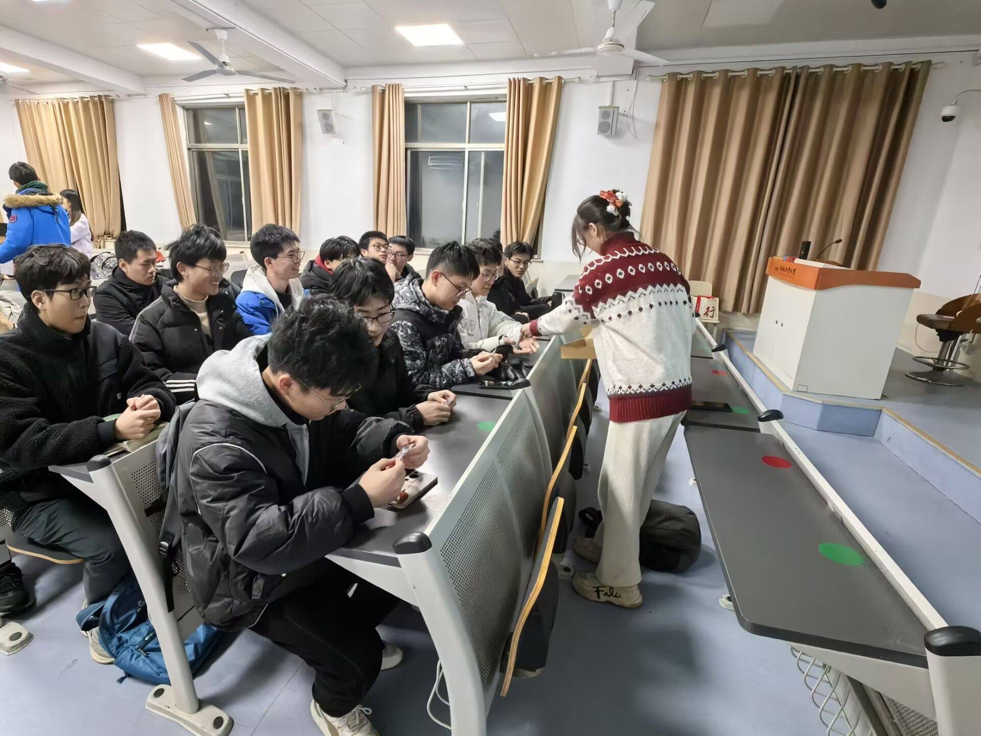 紧接着,团支书贾凡为同学们分发电子设计竞赛所必需的材料与器件。她手持一份详尽的清单,逐一核对并分发着每一件物品,确保每位参与者都能获得完整的物件。在分发过程中,贾凡为同学们介绍每一件器件的名称及其独特功能。她以专业且易于理解的语言,逐一剖析了555定时器、S8050型三极管等核心组件的关键作用,以及它们如何在电子设计项目中发挥至关重要的作用。通过她的讲解,同学们对这些器件有了更为直观和深入的理解,为后续的设计与制作打下坚实的基础。