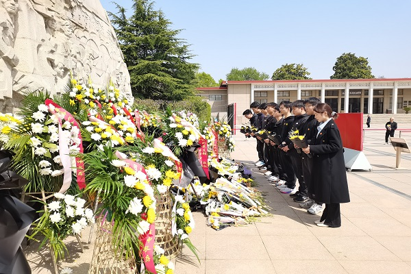 蜀山烈士陵园镌刻着190位江淮英烈的丰功伟绩,从陈延年“站着从容就义”的铮铮铁骨,到许继慎“一生许国”的赤胆忠心,每一座丰碑都在诉说着热血铸就的史诗。在庄严肃穆的烈士纪念碑前,师生齐唱《义勇军进行曲》,铿锵誓言穿透云霄。党员代表手捧素菊缓步拾阶,将最深沉的追思献给长眠地下的英灵。在革命烈士事迹陈列馆,斑驳的史料与生动的讲解交织,勾勒出先烈们“捐躯赴国难,视死忽如归”的精神图谱。学生党员王惠群动情地说,“这不仅是历史的回望,更是精神的传承。我们接过信仰的火炬,就要让它在新时代绽放光芒。”