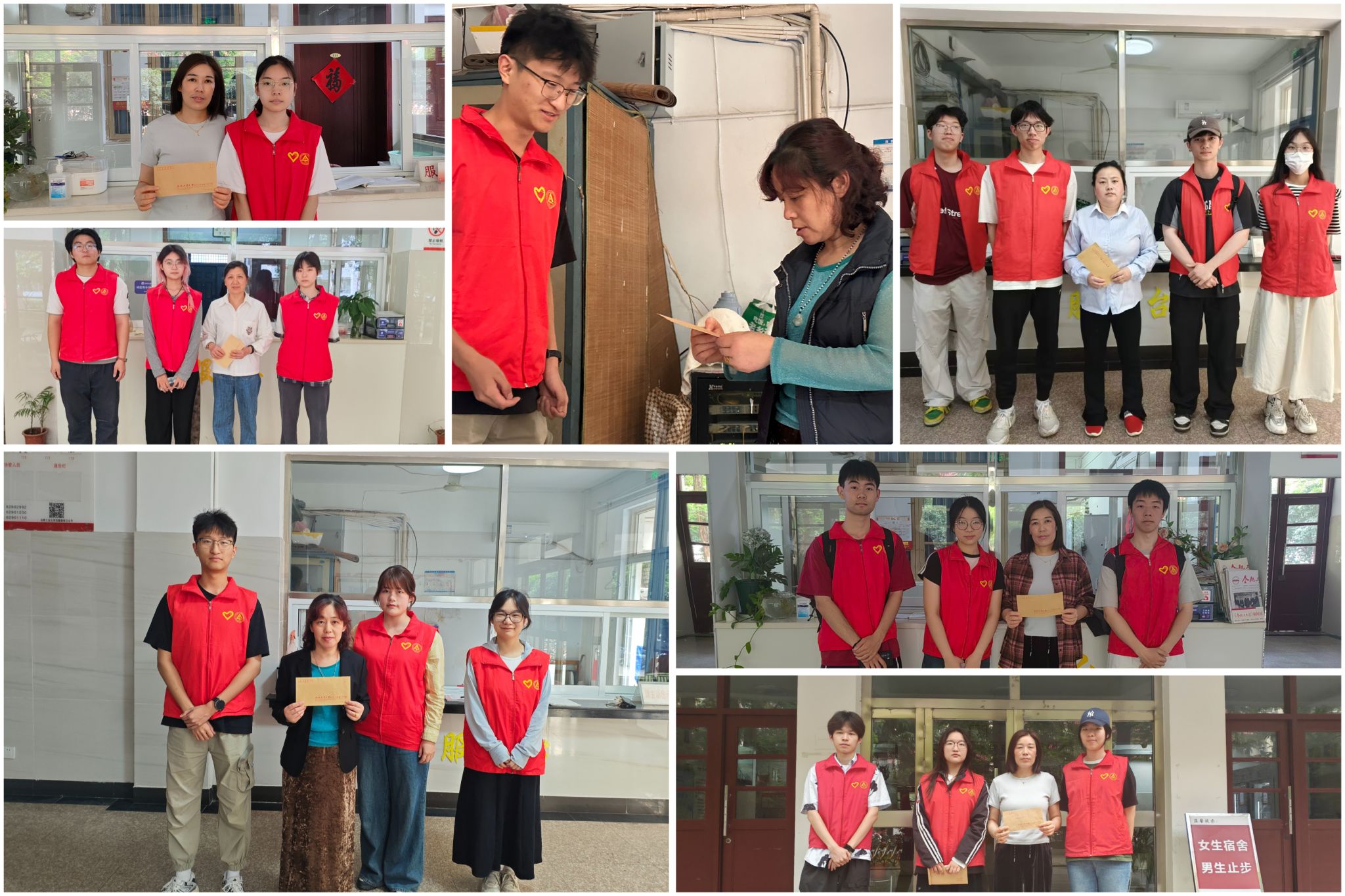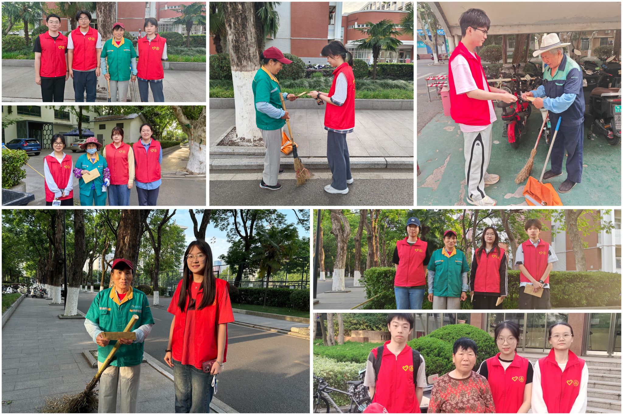 以信言声,用心阐述感谢之音。4月29日,党校学员按照分组前往学校大门、食堂、教学楼等地,为默默无闻,辛勤劳作的劳动者赠与亲手书写的感谢信,为安全校园、整洁校园、温馨校园背后“无名的人”献上节日祝福。全体成员以实际行动走出“驰于空想”和“骛于虚声”的囹圄,看到阿姨、大叔脸上洋溢着幸福的笑容时纷纷感到活动特别有意义,表示这是一次别样的,令人难忘的劳动假期,也对劳动产生别样的,更加深刻的理解。