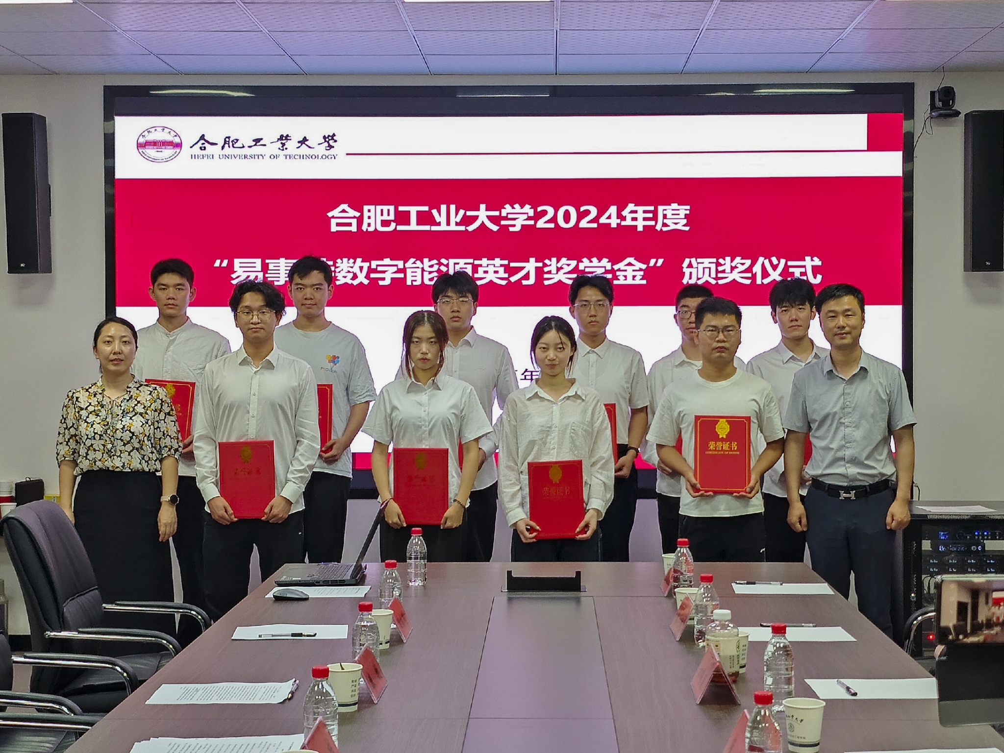 党委学生工作部(处)副部(处)长邹佳莹宣读了《合肥工业大学关于表彰2024年度“易事特数字能源英才奖学金”获得者的决定》。2021级本科生廖敏代表获奖学生发言。与会领导老师为10名获奖学生颁奖并合影留念。