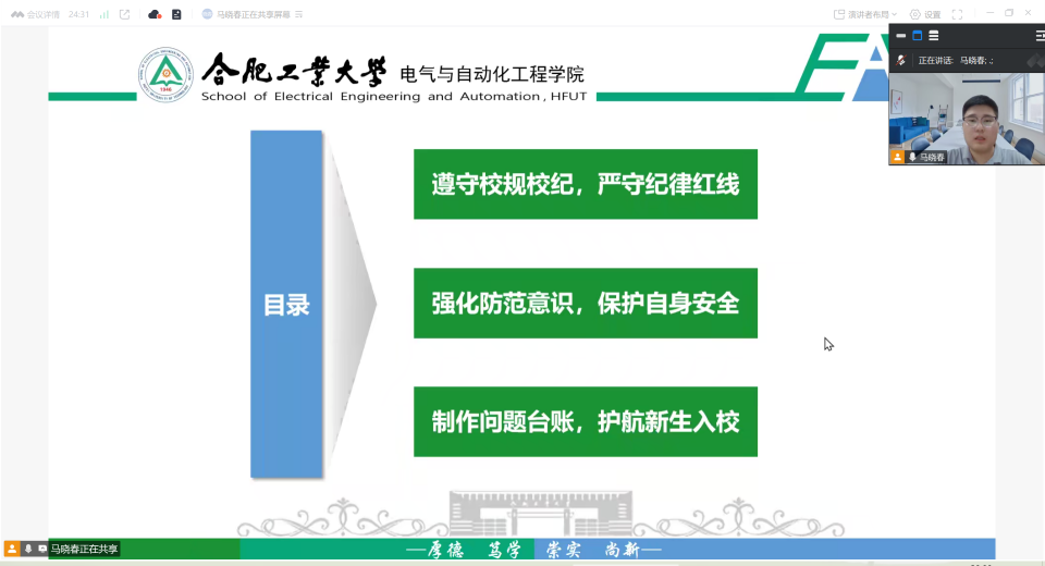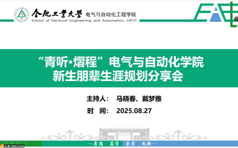 为帮助本科新生提前适应大学节奏、明晰成长方向,电气与自动化工程学院于8月27日晚召开“青听·熠程”新生教育会议,全体本科新生相聚云端,共话入学前准备与未来规划。