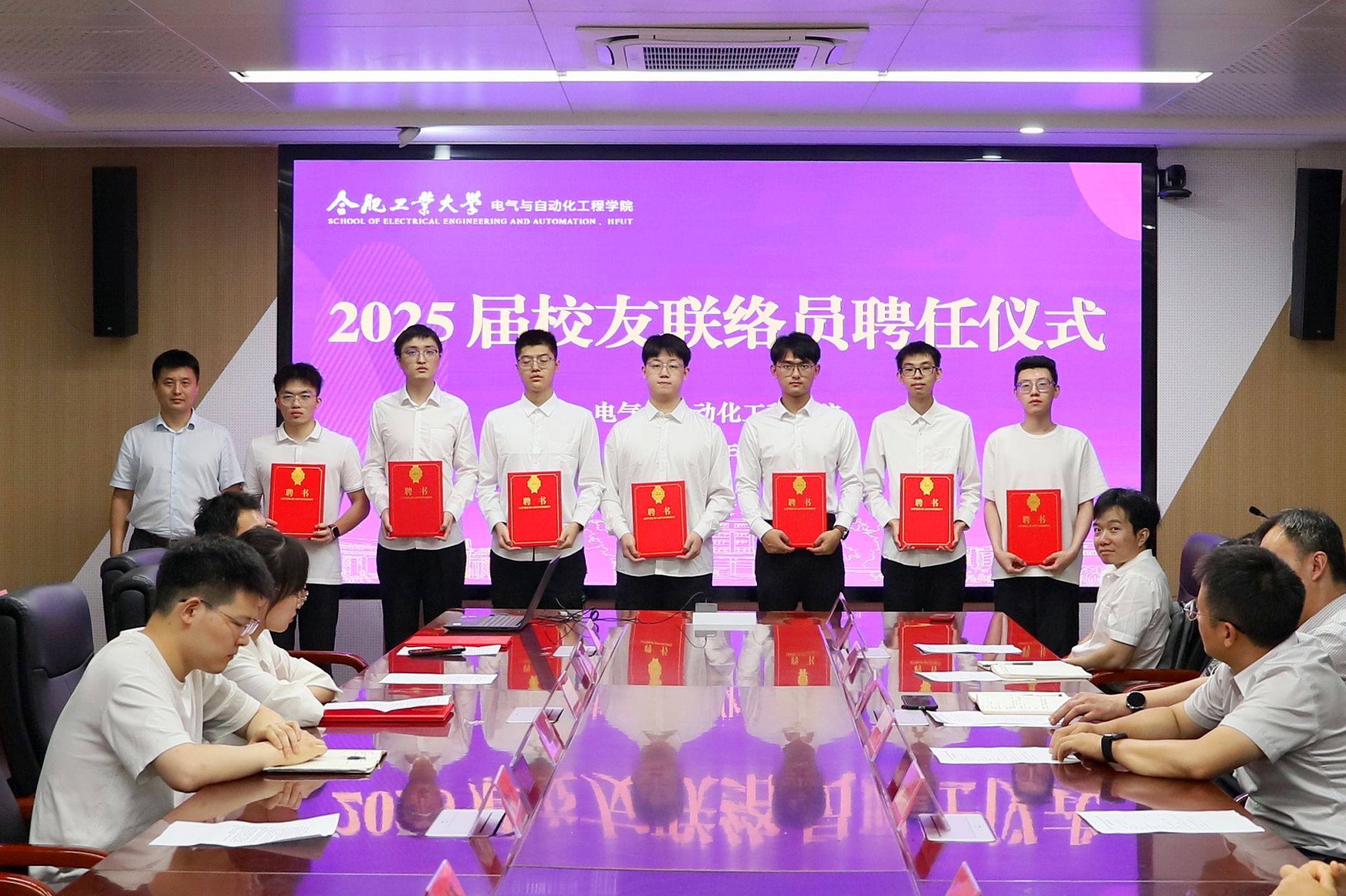 6月12日,电气与自动化工程学院于逸夫楼1009会议室举行2025届校友联络员聘任仪式,学院党委书记冯航、院长向念文、学院党委副书记兼纪委书记张栋、毕业班辅导员、各班级受聘校友联络员参加仪式。