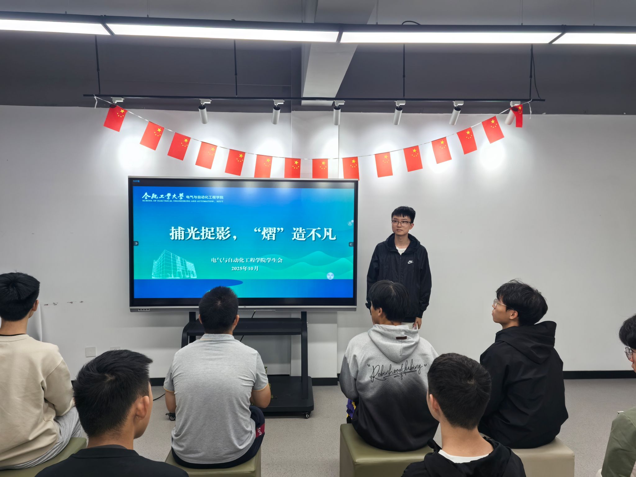 10月18日晚,电气与自动化工程学院于翡翠湖校区五号南楼学生沙龙社区开展“捕光捉影,‘熠’造不凡”摄影业务能力培训,面向2025级学生开展摄影教学。
