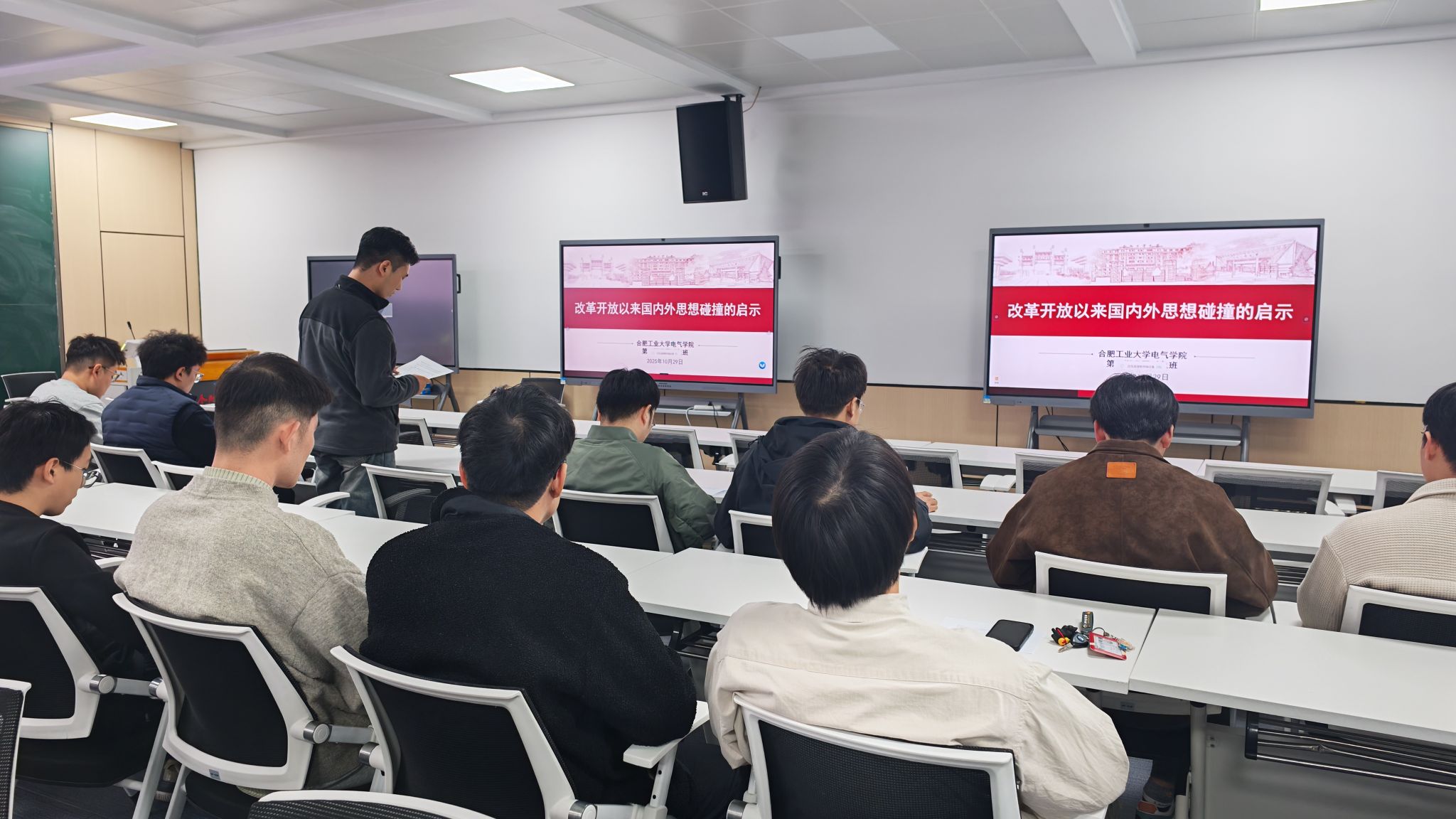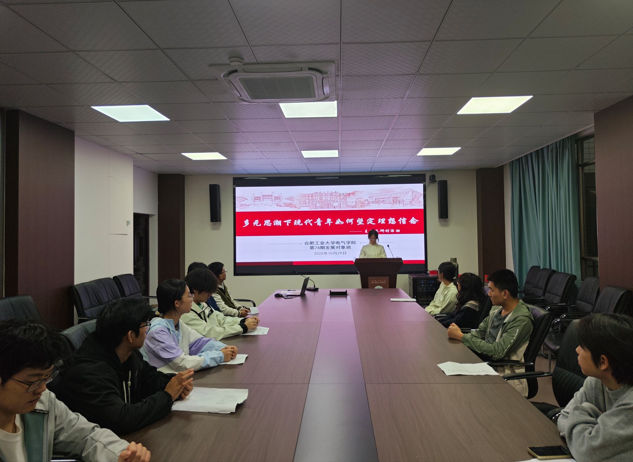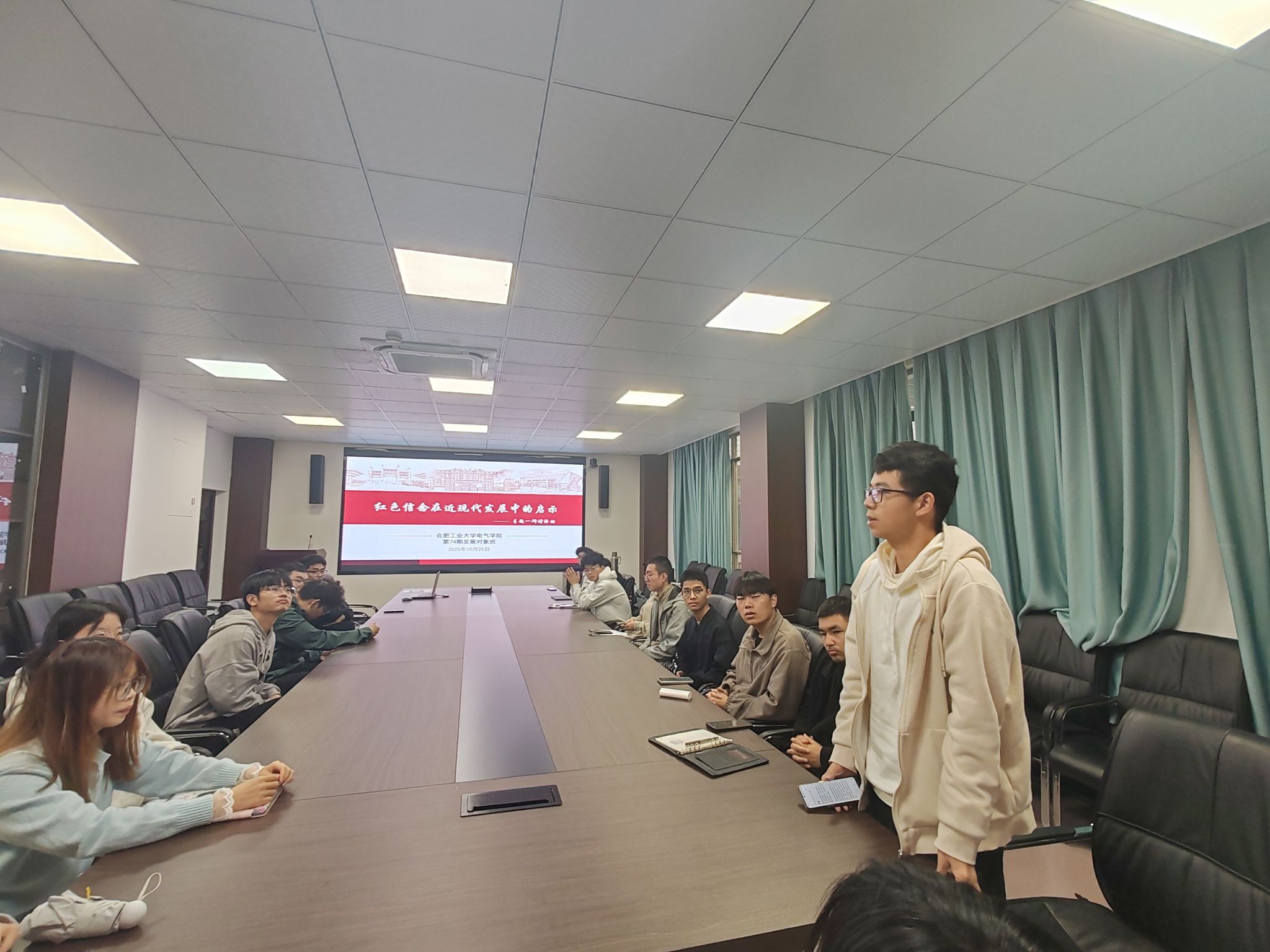 10月25日-10月30日,电气与自动化工程学院在逸夫楼会议室开展党校班系列交流研讨活动,第74期发展对象班全体学员参与活动。