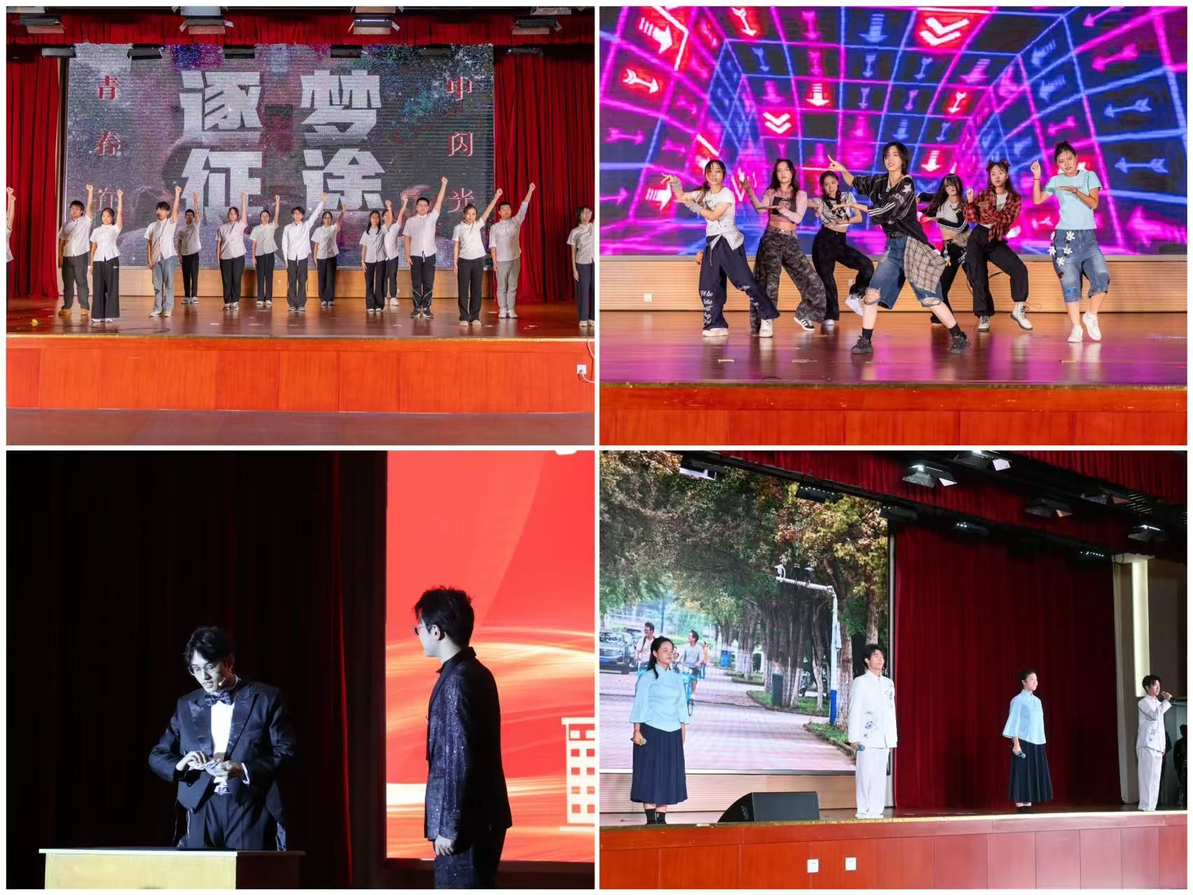 本次艺术团课暨文艺展演分为“礼赞华章”“青春趣享”“追梦逐光”三个篇章。舞台剧《不朽的流星》讲述校友陈秋华为国防事业奉献终身的故事;学院原创歌曲《斛舟竞渡》以深情旋律诉说爱校荣校之情;诗朗诵《八秩风华与青春序章》致敬母校八十华诞;乐器合奏《我爱你中国》,以悠扬琴音传递家国情怀;歌曲《落叶归根》诉说远方与归家的情愫;说唱《烈火战马》歌颂历史、再现先辈报国志;手语合唱《星辰大海》传递包容与团结。