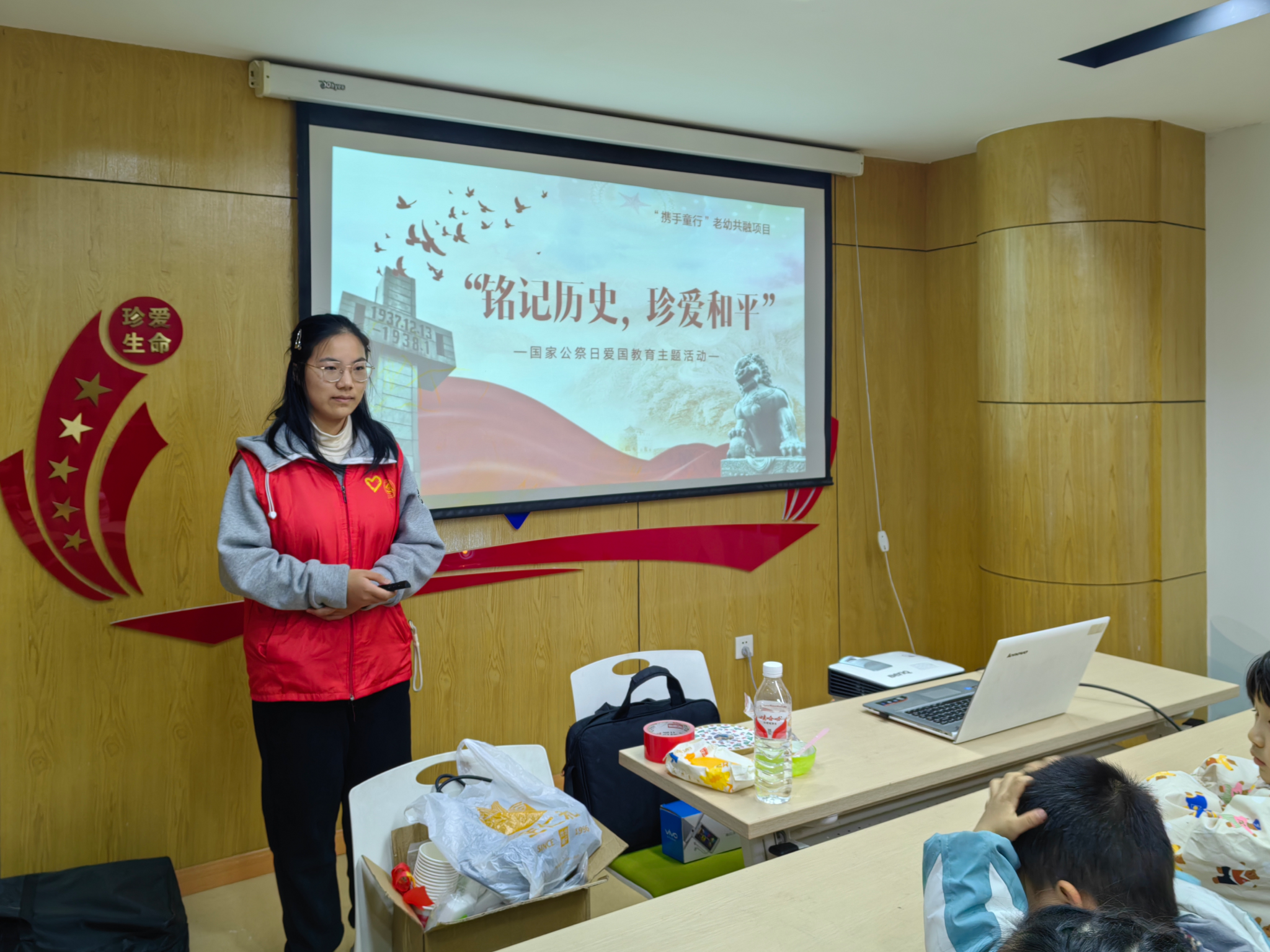 活动伊始,阳光志愿服务中心志愿者与孩子们亲切互动拉近距离,用通俗语言讲解国家公祭日的设立背景与深刻意义。今昔对比环节中,从山河破碎到国力强盛的直观变化,让孩子们深切体会和平生活的来之不易。《和平宣言》朗诵环节,全体参与者齐声诵读,历史回响与和平向往交织,强化“铭记历史 珍爱和平”的集体意识。手工实践环节,志愿者指导孩子们制作“爱国主题DIY马赛克杯垫”,孩子们将爱国情感融入作品。活动全程,志愿者悉心维护秩序、保障安全。社区负责人表示,此次活动为孩子们上了生动的历史与思政课,让爱国和平理念扎根心底。