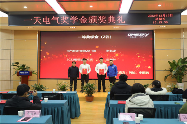 一天电气董事长芮骏对获得“一天电气奖学金”的同学表示祝贺,对支持和关心一天电气工作的工大老师们表示感谢。他介绍了目前企业的主要经营方向、企业的核心技术优势和未来技术的发展方向。并表示近三年在学生培养方面,与工大在项目合作、实验室联合申报、非全研究生培养、人才引进方面建立了长期的合作。他希望可以通过“一天电气奖学金”的设置鼓励先进、奖励促学,增强学生努力学习的信心,并表示希望更多的同学了解一天,关注一天,欢迎未来有更多的同学加入一天。