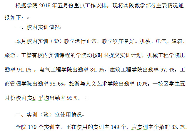 学院实践教学情况通报2014--2015学年第二学期(第2期)