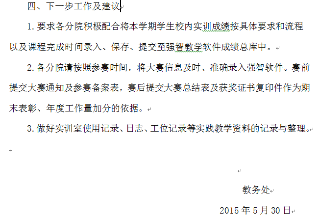 关于报送2014-2015学年第二学期教学工作总结的通知