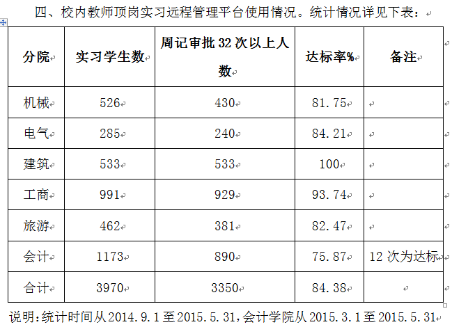 学院实践教学情况通报2014--2015学年第二学期(第3期)