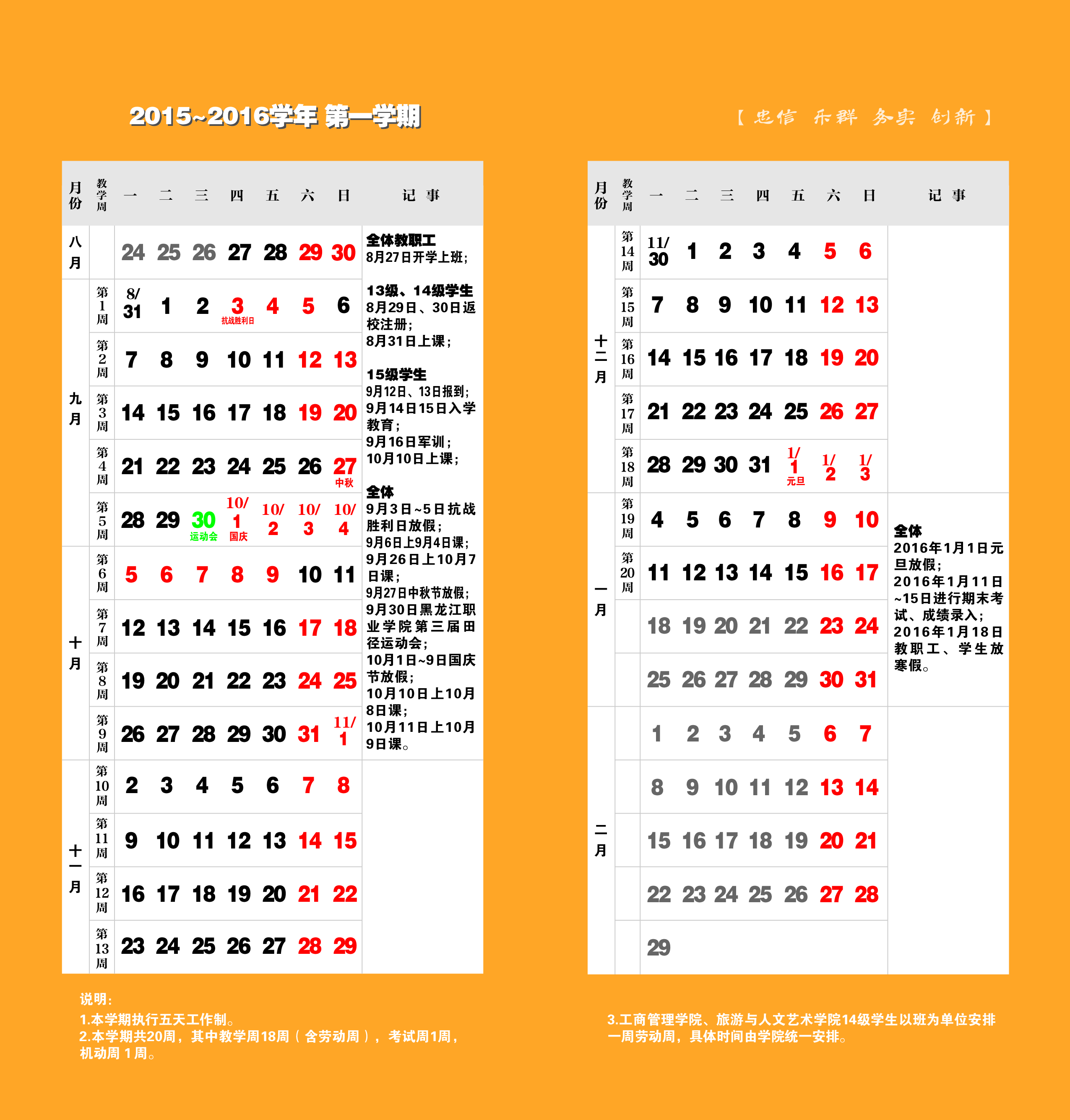 2015-2016第一学期 校历