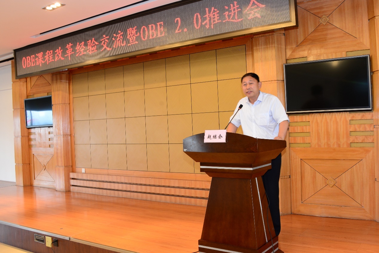 7月4日,为总结我校成果导向教学改革阶段经验,扎实推进成果导向教学改革OBE2.0工作,学校在经济报告厅召开OBE课程改革经验交流暨OBE 2.0推进会。学校党委书记赵继会、副校长王明海、各二级学院(部)全体专业教师及各教学部门代表参加会议,会议由王明海主持。