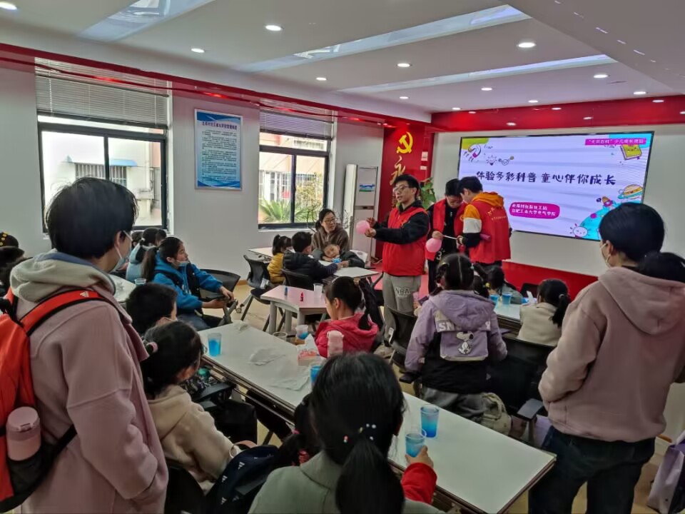 为弘扬雷锋精神,践行“奉献、友爱、互助、进步”的志愿精神,激发青少年对科学实验的兴趣,3月25日上午,电气与自动化工程学院本科生第一党支部联合阳光志愿服务中心前往北苑村社区开展“多彩科普,‘熠’伴成长”科学小实验志愿服务活动。