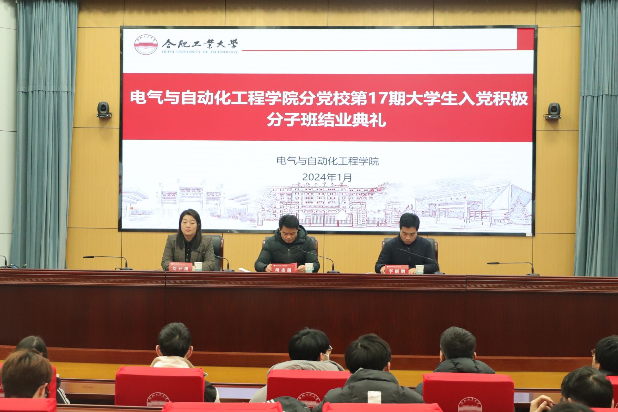 1月11日下午,电气与自动化工程学院分党校第17期大学生入党积极分子班结业典礼在学术会议中心一楼大报告厅举行,学院党委书记、分党校校长何岳颀、学院党委副书记兼纪委书记、分党校副校长李丽鹏、学院学生工作办公室主任兼团委书记刘开阳、班主任及117名结业学员参加本次结业典礼。
