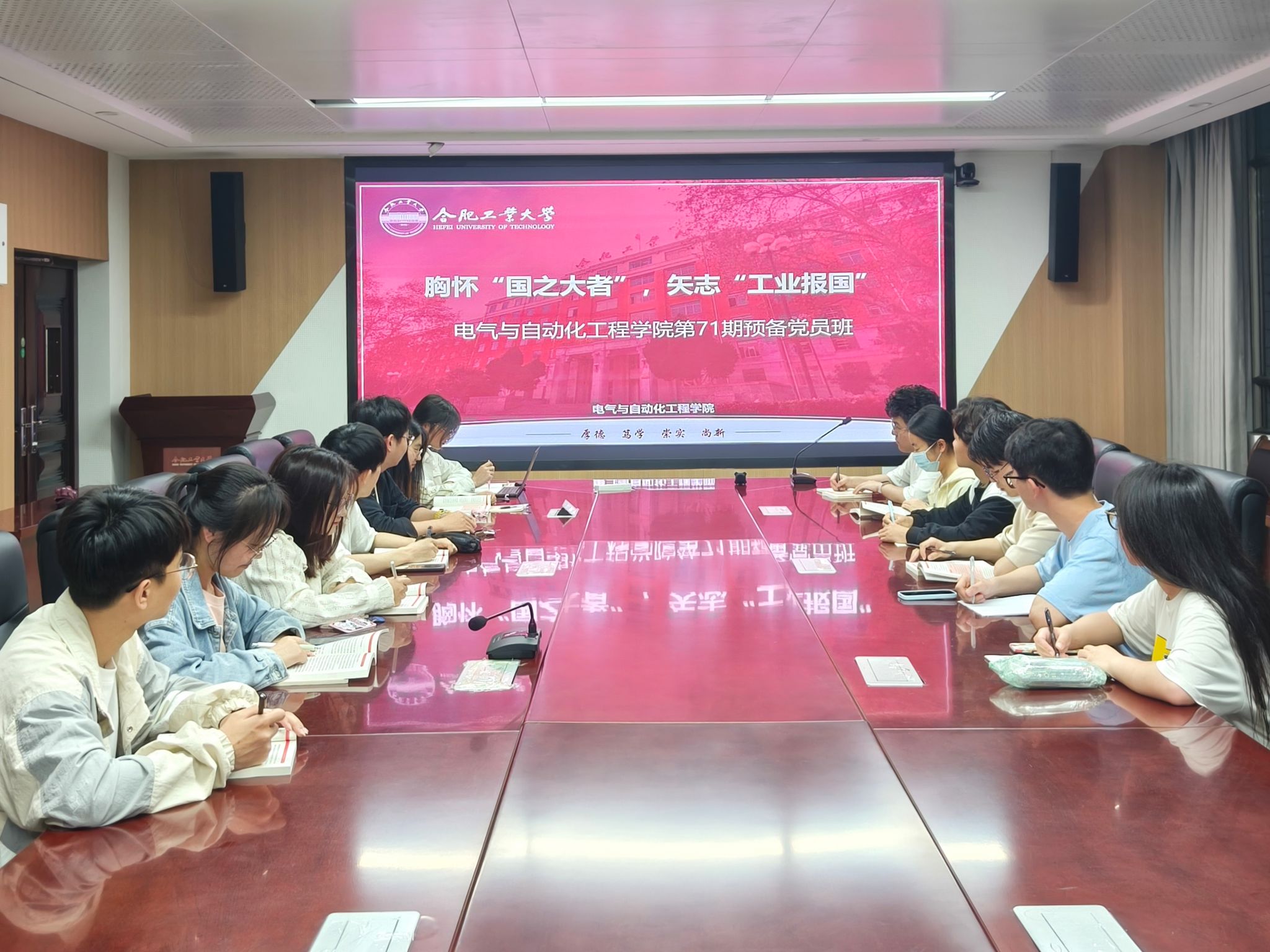 4月28日-4月29日,电气与自动化工程学院组织党校71期预备党员班学员在屯溪路校区学生公寓5号楼沙龙空间、逸夫楼1009等地开展“胸怀‘国之大者’,矢志‘工业报国’”主题研讨及交流活动。