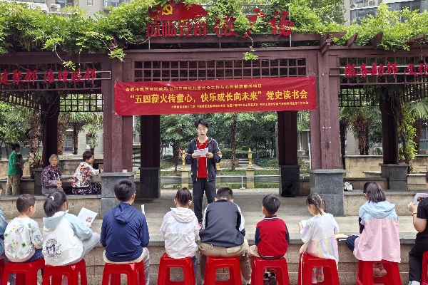 5月24日上午,电气与自动化工程学院本科生第二党支部联合电气工程及其自动化专业2024级4班团支部走进包河区滨湖世纪社区,开展"五四薪火传童心,快乐成长向未来"主题党史读书会。活动通过室外沉浸式互动教育,让五四精神在少年心中生根发芽。