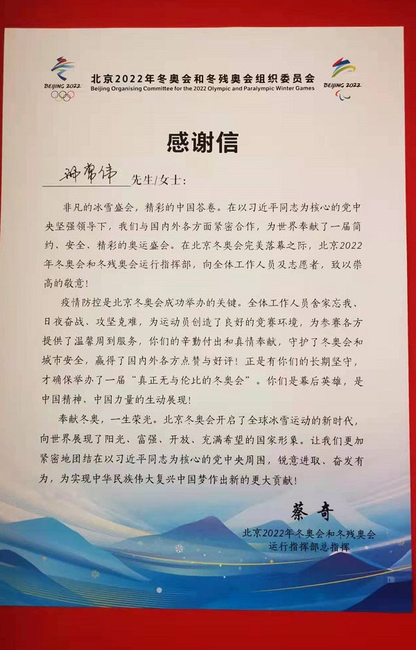 新年伊始,我校通识教育学院体育教师张巍收到了期盼已久的2022年北京冬奥会组委会邀请函,赴北京担任2022年冬奥会裁判员工作。这是多少体育人的梦想,作为一名体育教师能够亲眼见证2022年北京冬奥会是多么骄傲与自豪。