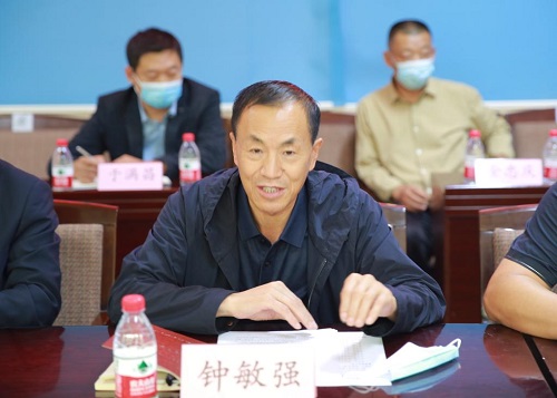 ▲钟敏强向与会领导介绍学校疫情防控情况