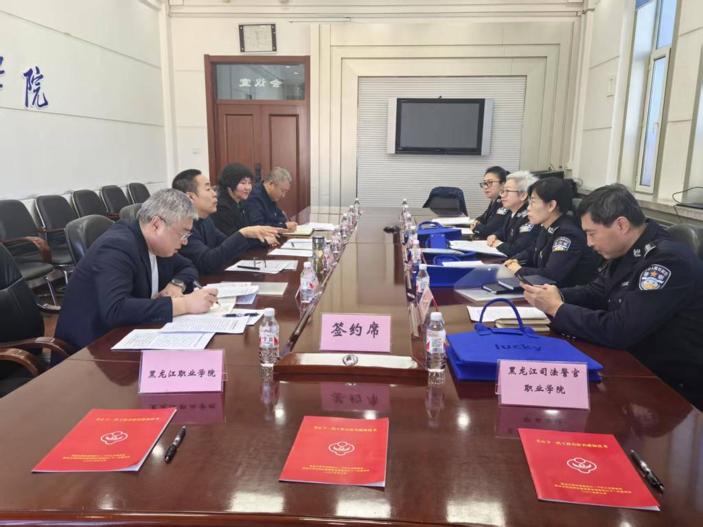 在交流研讨会上,李伟和施秀艳分别介绍了各自学校的基本情况。学校关工委办公室主任张晓东和黑龙江司法警官职业学院政治处副主任李小侠就各自学校关心下一代工作开展情况做了汇报。学校关工委副秘书长、离退休人员工作处党总支副书记杜爽与李小侠签订《关工合作共建协议书》。
