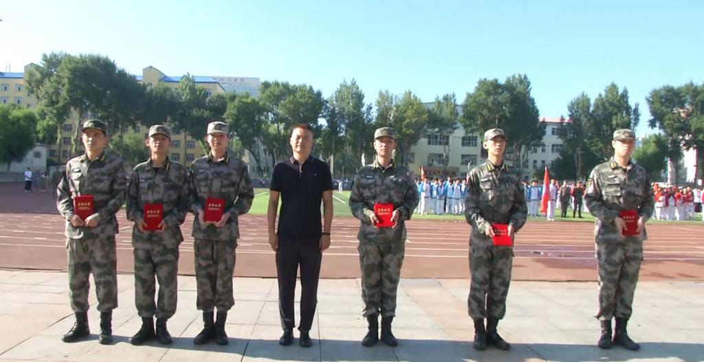 ▲周家郁为“军操标兵班”获奖代表颁奖