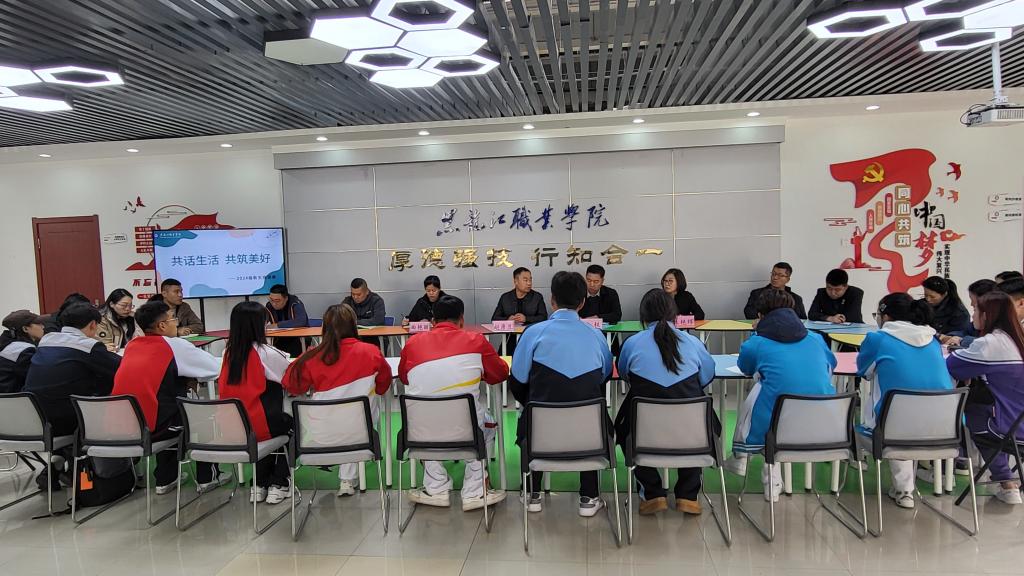 10月10日下午,学生工作部联合后勤管理处组织召开“共话生活·共筑美好——2024级新生座谈会”。学生工作部部长赵彦生,后勤管理处党总支书记朱艳辉、处长孙权,学生工作部副部长曲艳丽及相关科室负责人、各二级学院学生代表参加座谈会。座谈会由赵彦生主持。