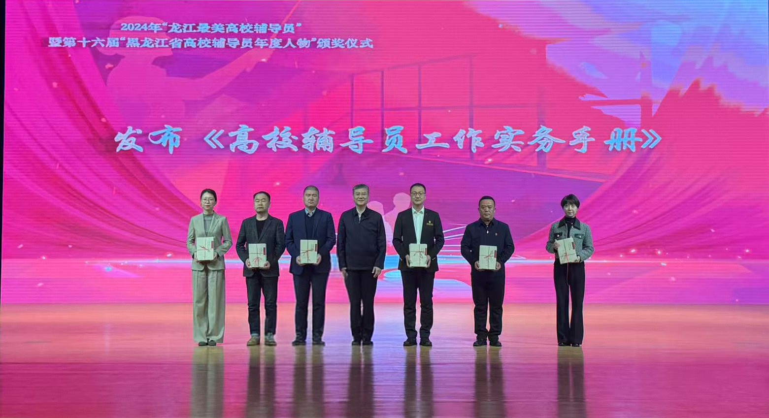 于德洋作为第十六届“黑龙江省辅导员年度人物”上台领奖。随后,由省委教育工委、省教育厅牵头编印的《高校辅导员工作实务手册》正式发布,该手册聚焦辅导员日常思想政治工作中的痛点难点,通过系统化、标准化的指导内容,为辅导员提供精准实操方案,助力解决“不会干”“干不好”的实际困惑。赵彦生作为全省高校学工部长代表,庄重接收了省教育厅副厅长雒文虎颁发的《高校辅导员工作实务手册》,这既是对我校辅导员队伍建设成果的高度认可,也是对我校在思想政治教育工作领域引领作用的充分肯定。