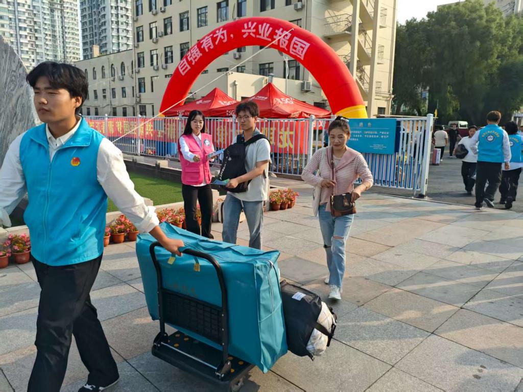 ▲志愿者帮助新生搬运行李物品