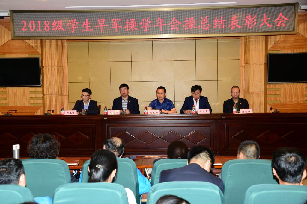 6月14日,学校举行2018-2019学年学生早军操学年总结表彰大会。党委副书记周家郁出席并讲话,二级学院党总支书记,学管副院长,学管办主任,学工部和团委班子成员,全体2018级辅导员以及学生干部代表参加此次大会,会议由学工部部长石明杰主持。