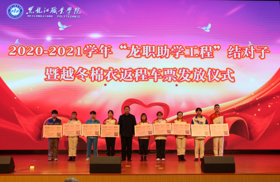 12月2日,学校隆重举行2019—2020学年学生表彰奖励大会暨2020—2021学年“龙职”助学工程启动仪式。党委书记赵继会,党委副书记、校长王利文,副校长王明海,党委委员、组织部长钟敏强出席会议,帮扶结对子师生代表、受助越冬棉衣和返程车票学生代表、受表彰奖励学生代表等参加大会。会议由党委副书记周家郁主持。