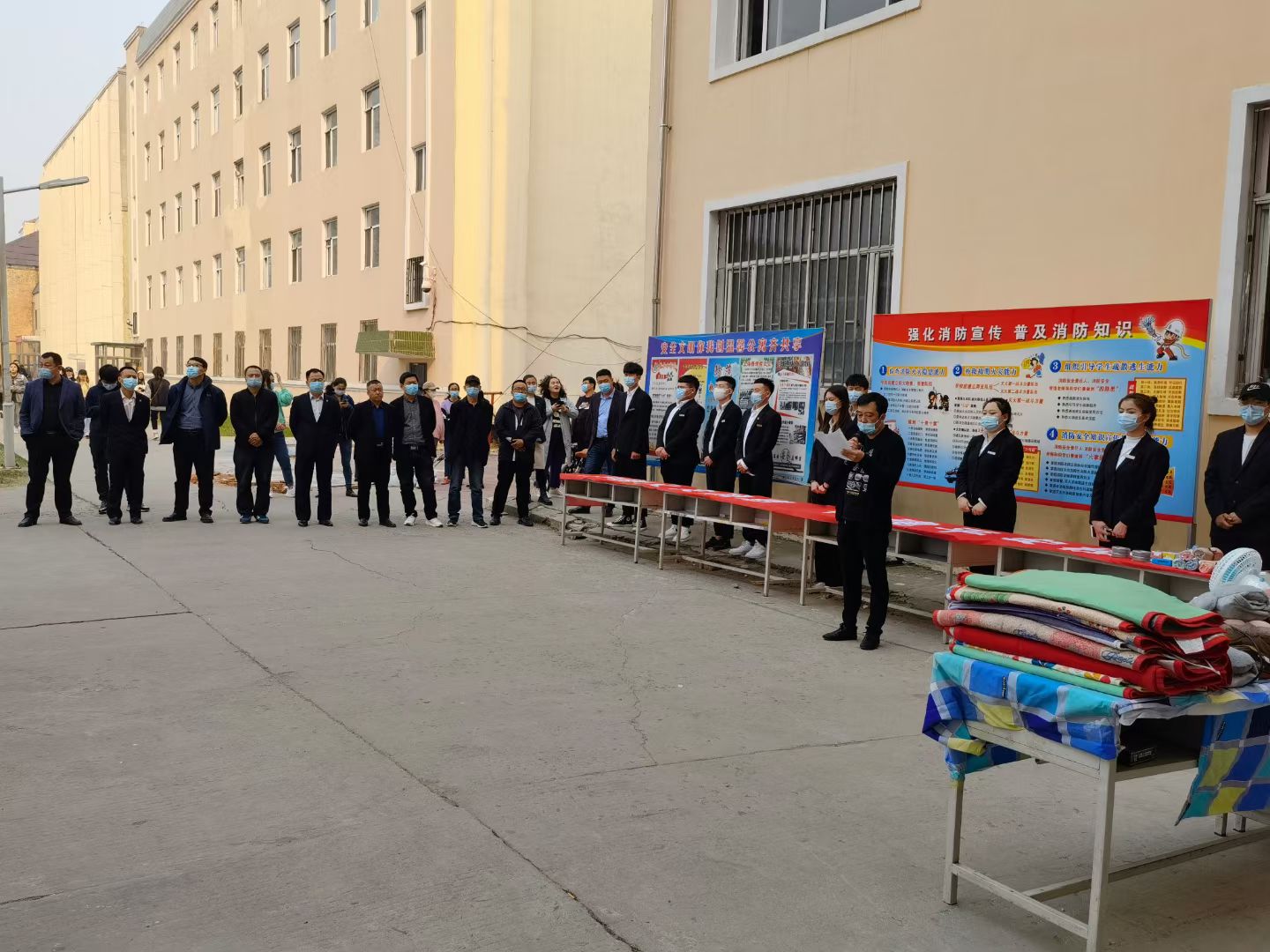 4月21日下午,在第二校区一号学生公寓楼前举行现场活动。活动现场进行了灭火器的讲解和实战演示、应急情况下开启公寓安全门疏散逃生、大功率电器及违禁品展示、有奖安全知识问答等活动。灵活多样的互动环节,吸引了大批学生踊跃参与,公寓中心准备了带有安全小常识的香皂、牙刷、水杯等生活用品相送。最后,师生们在“遏制火灾隐患,构建平安校园”条幅上集体签名留念。