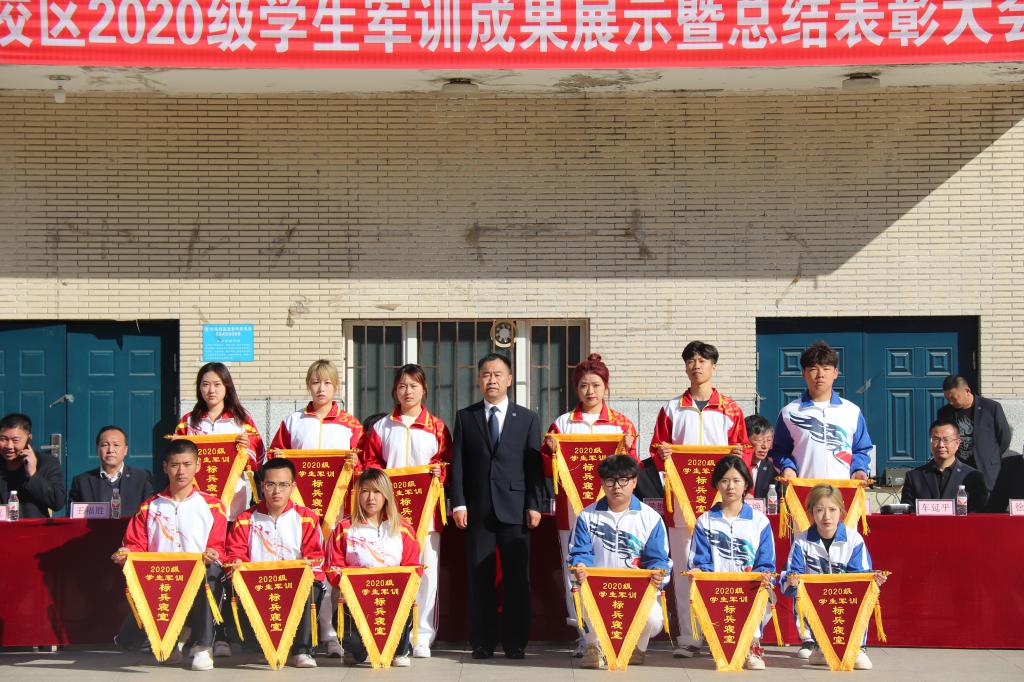 在充分的准备下,军训成果展示在全体参会人员奏唱国歌的庄严氛围中拉开了序幕。大会上,获奖连队代表在教官的指挥下,分别进行了军训队列队形、标兵内务整理和革命歌曲演唱表演,学生们以坚定整齐的步伐、饱满的热情为建党一百周年献礼,场面热烈,赢得了全场师生们的热烈掌声。随后,与会领导为军训中获得奖项的集体和个人颁发了证书、锦旗和奖牌。