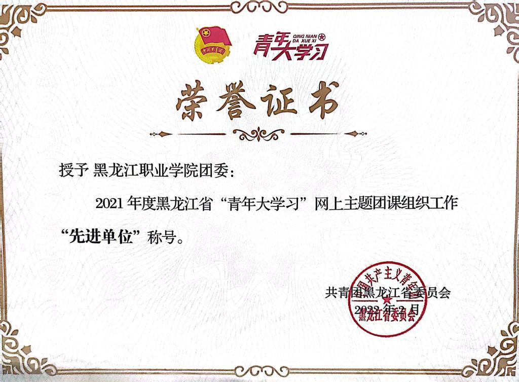 ⚪ 黑龙江职业学院团委荣获2021年度黑龙江省“青年大学习”网上团课组织工作“先进单位”荣誉称号;