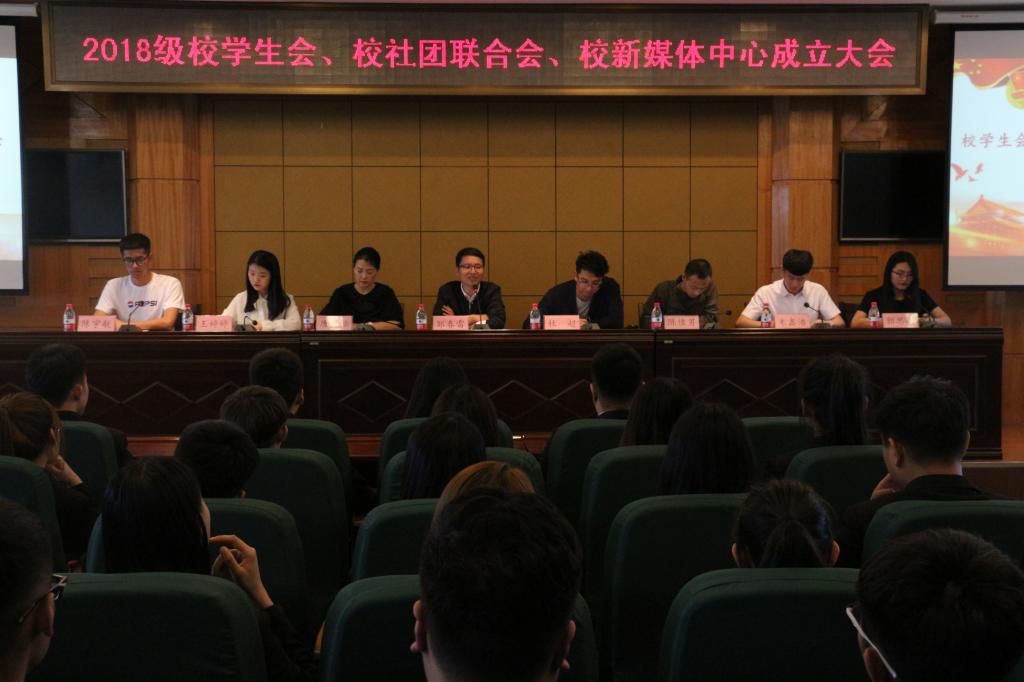 5月28日—6月4日,学校开展2018级校学生会、校大学生社团联合会、校大学生新媒体中心主要学生干部的换届改选和竞聘上岗工作。6月5日2018级校学生会、校大学生社团联合会、校大学生新媒体中心成立大会顺利举办,学校团委书记邹春雷,副书记杜超,组宣办主任唐晓恬,2017级兼职学生副书记陈佳男、王婷婷参加会议。会议由王婷婷主持。
