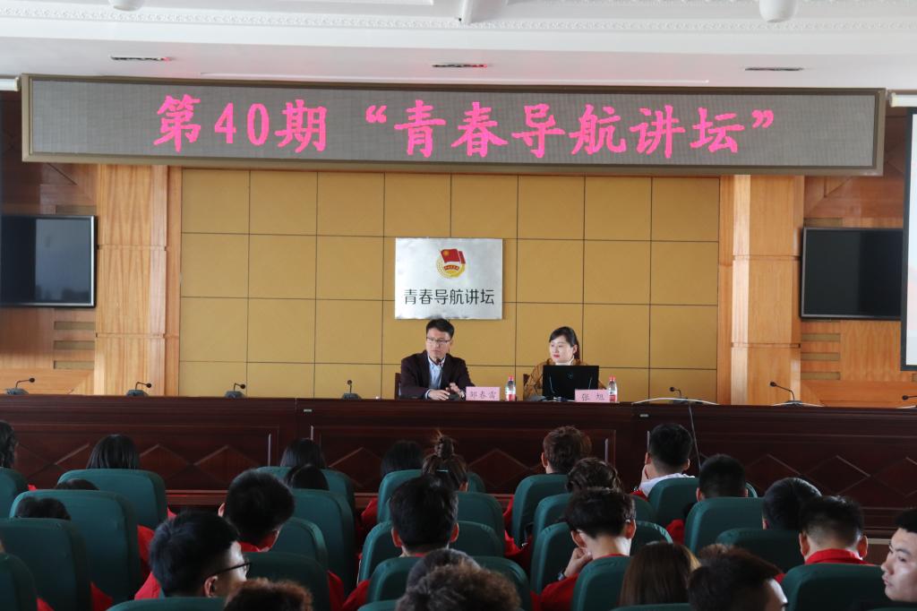 10月17日,第40期“青春导航讲坛”成功举办,本期讲座特邀我校思政部德育教研室教师张旭为同学们作题为“不忘初心、牢记使命,青春建功新时代”的专题讲座,各二级学院学生入党积极分子、学生干部代表近500人参加此次活动,二校区同步视频收听收看讲座。讲座由校团委书记邹春雷主持。