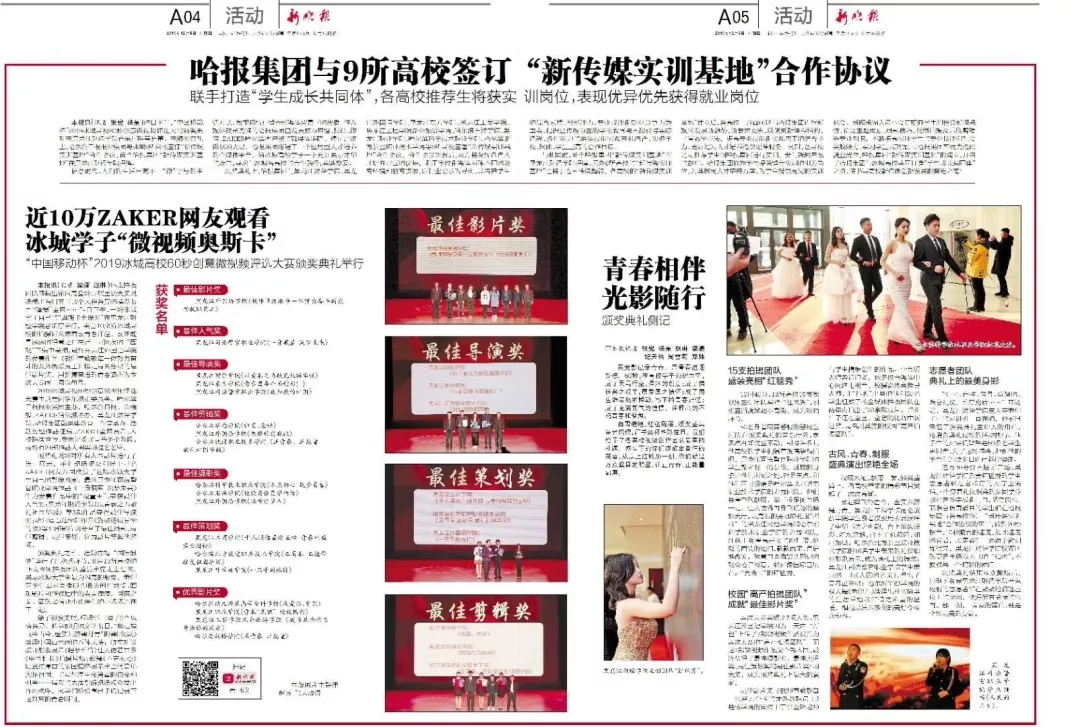 “新传媒实训基地”建立后,我校一方面可以与哈报集团进行新媒体发展新趋势、新要求交流,以便更新课程结构,丰富教学方法,提高专业技能和实践应用的结合能力,更好地为人才培养提供延伸服务。同时,我校还可推荐学生到哈报集团进行实训,参与新闻产品的制作。哈报集团将为我校学生提供适合实训的相关岗位,为其制定人才培养方案,为学生提供充足的实训机会。新闻采编人员也会定期向我校学生传授新闻采访、新闻主题策划、摄影技巧、视频拍摄及后期剪辑等专业知识,不断提高实训学生的专业技能和社会实践能力。