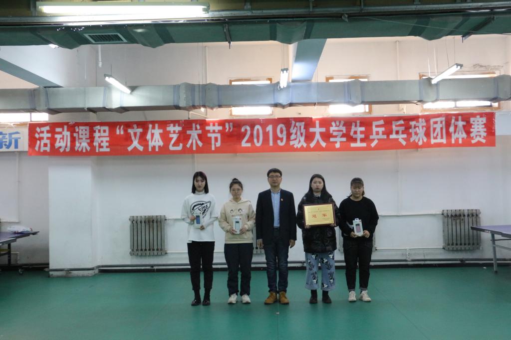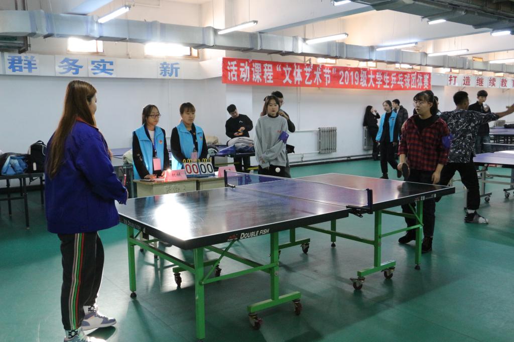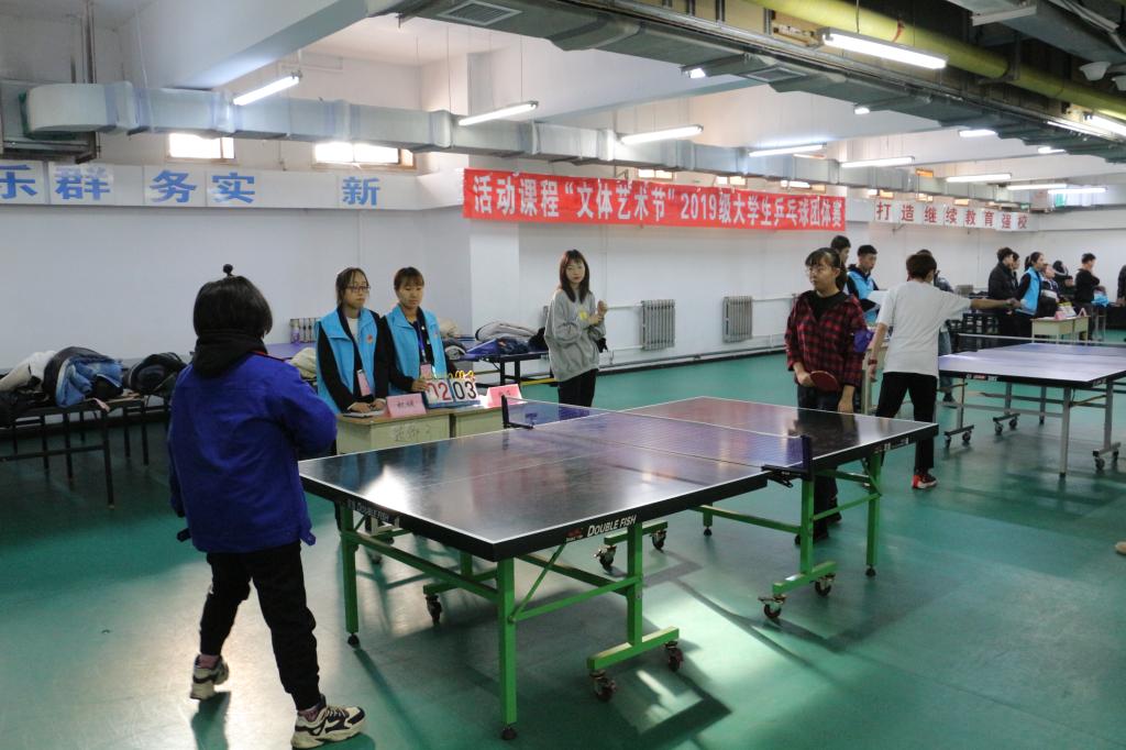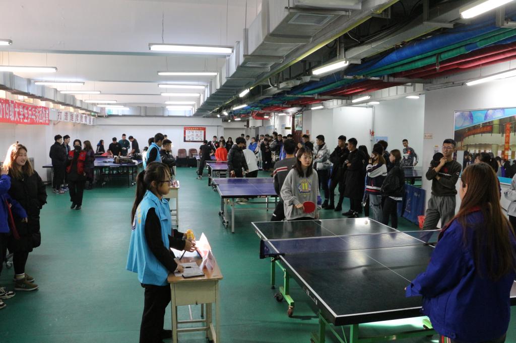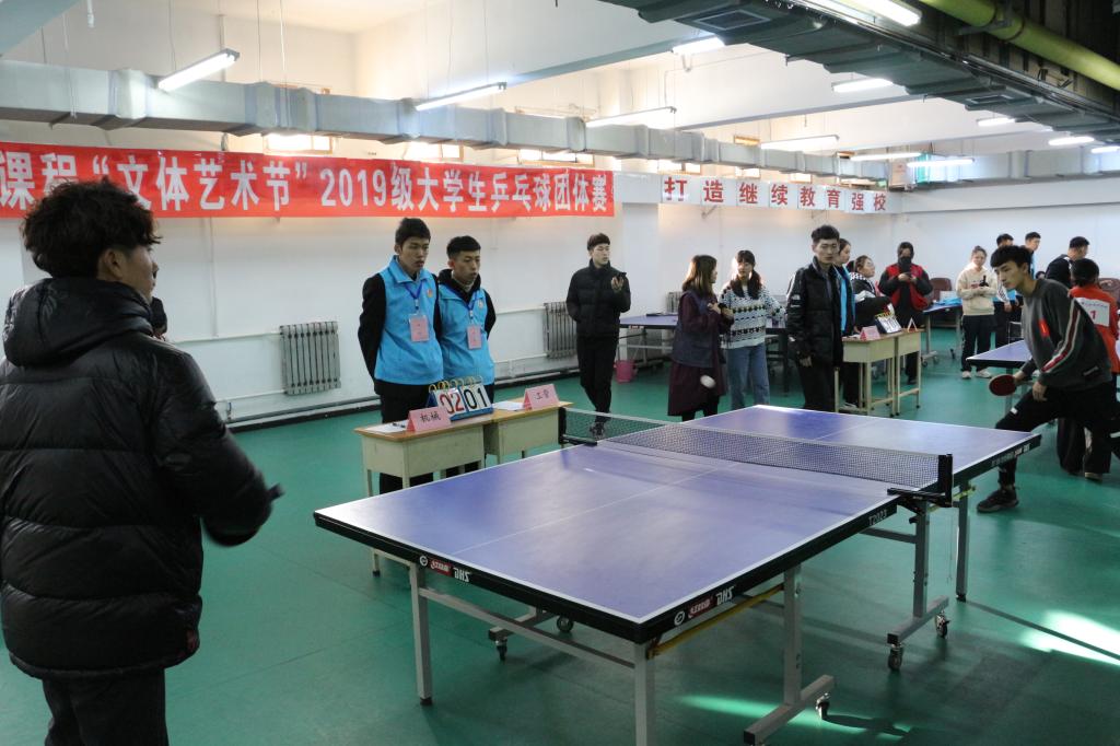 为响应团中央“走下网络、走出宿舍、走向操场”的号召,促进我校学生积极参与体育运动,加强体育锻炼,在全校营造积极向上、健康活泼、文明有序的校园文化氛围。按照校团委“缤纷四节”活动课程的总体安排,由校团委主办、校学生会文体部承办的“文体艺术节”2019级大学生乒乓球团体赛历时5天时间于12月17日完成了全部赛程,圆满结束。