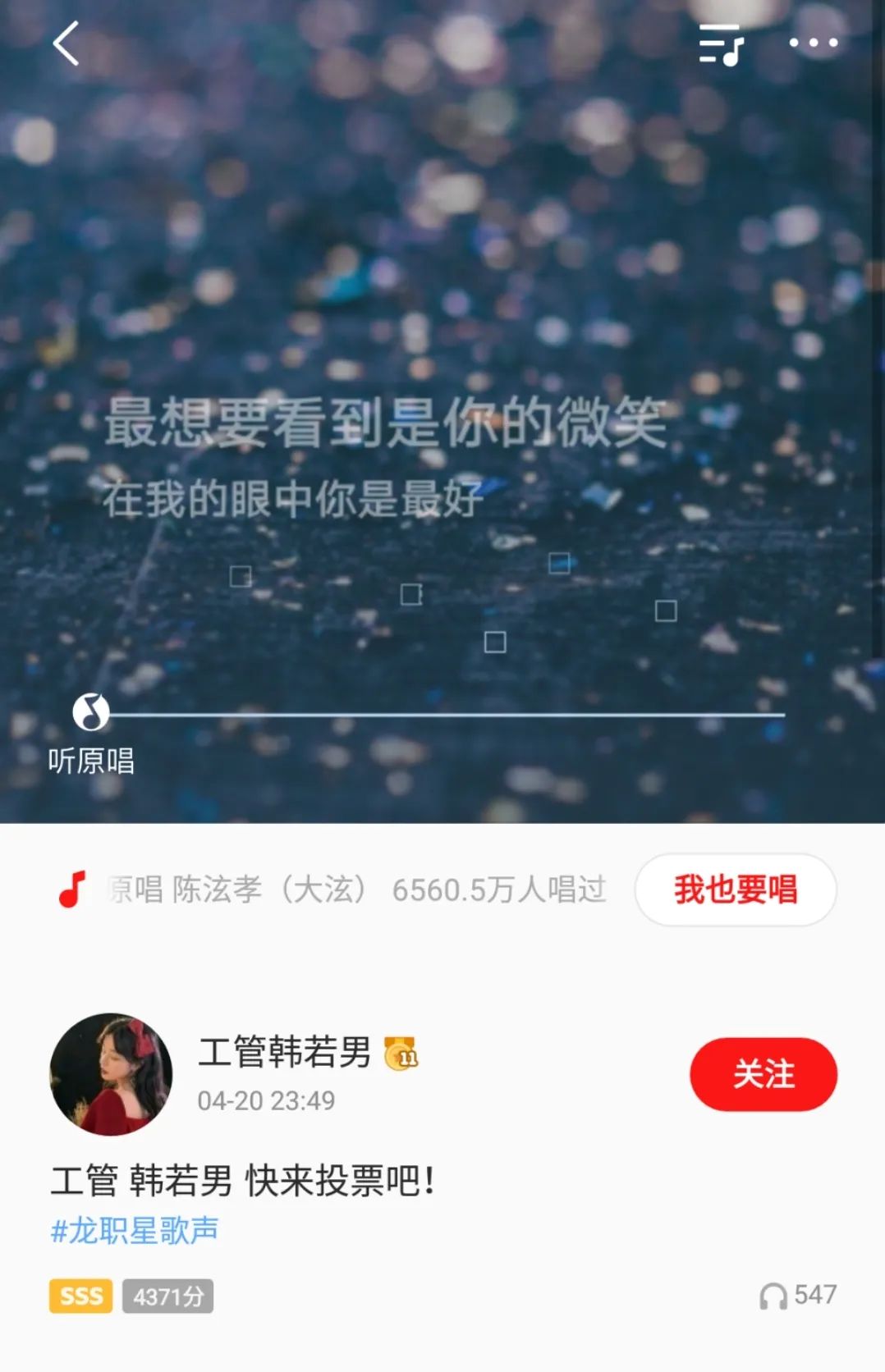 大赛自4月20日启动以来,得到了我校广大学生音乐爱好者的积极响应和热情参与,在各二级学院学生会的组织动员下,报名参赛人数达到430人。大赛期间,热情涌动、古风古韵、深情款款……风格迥异的参赛选手在“全民K歌“家族平台同台竞技,用歌声唱响青春,尽情释放K歌能量。我校参赛选手通过“全民K歌”平台展示演唱作品,吸引了数十万网友线上收听,赢得了数十万的作品点赞和人气投票。